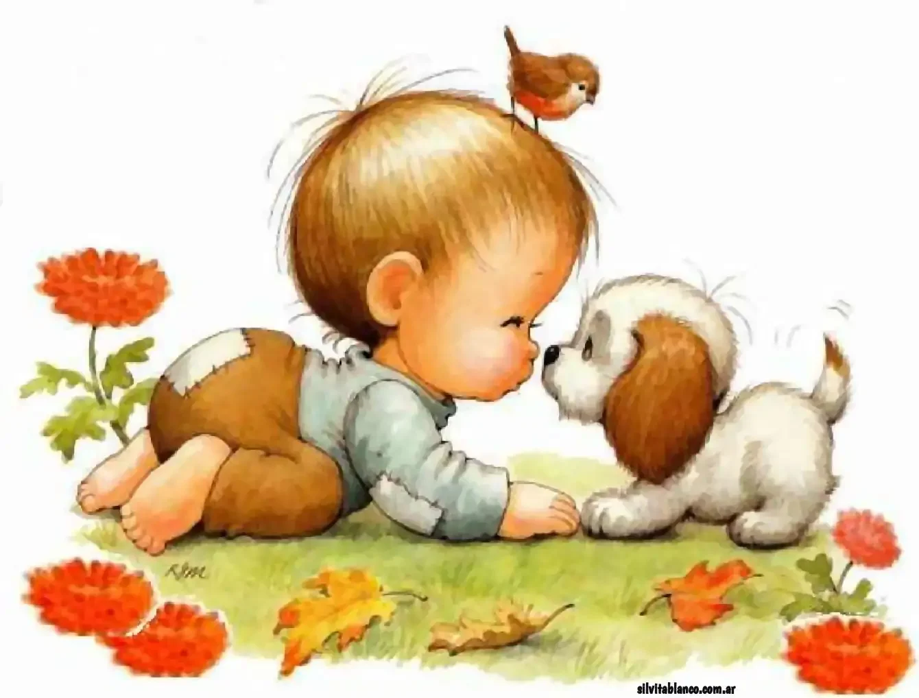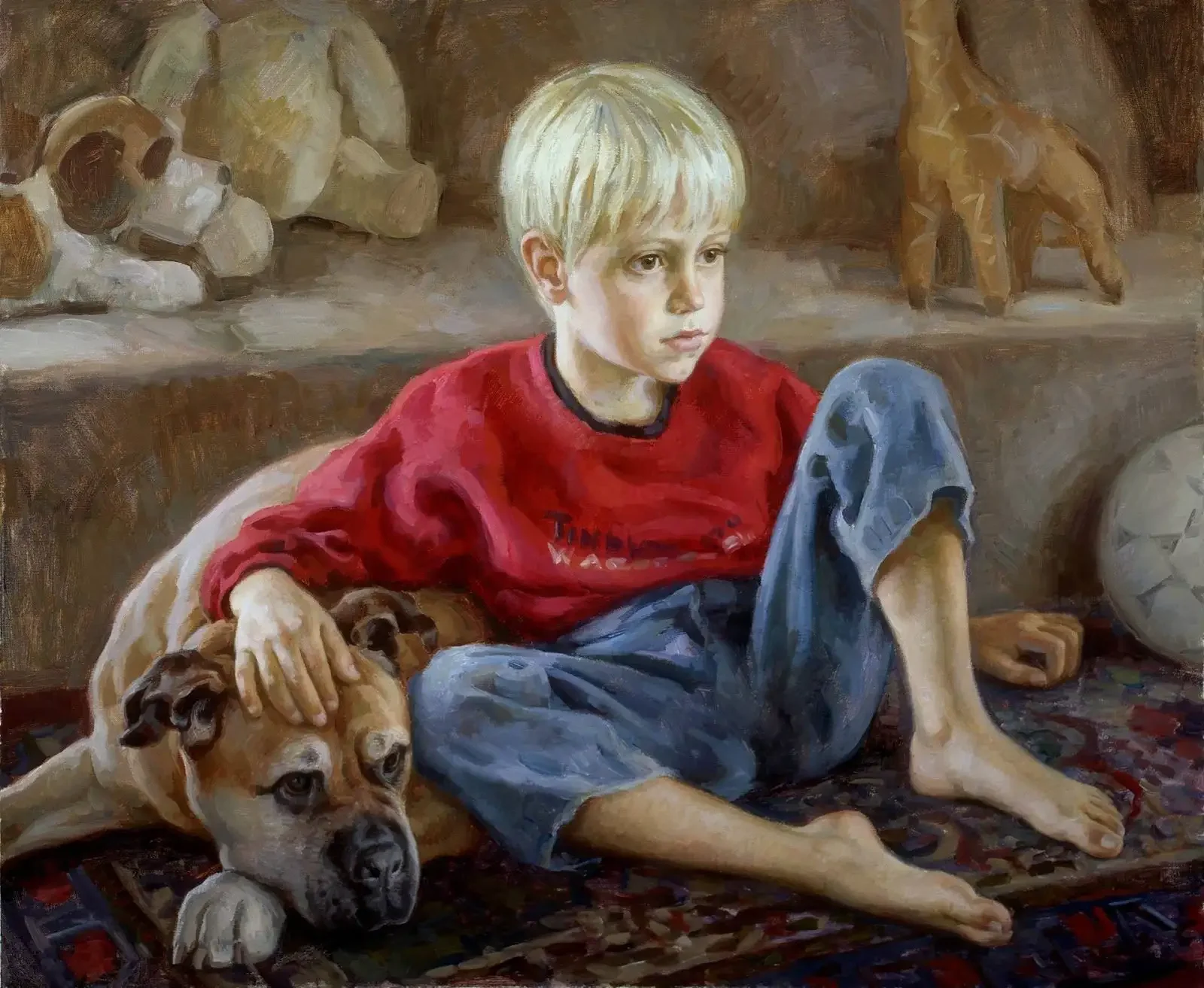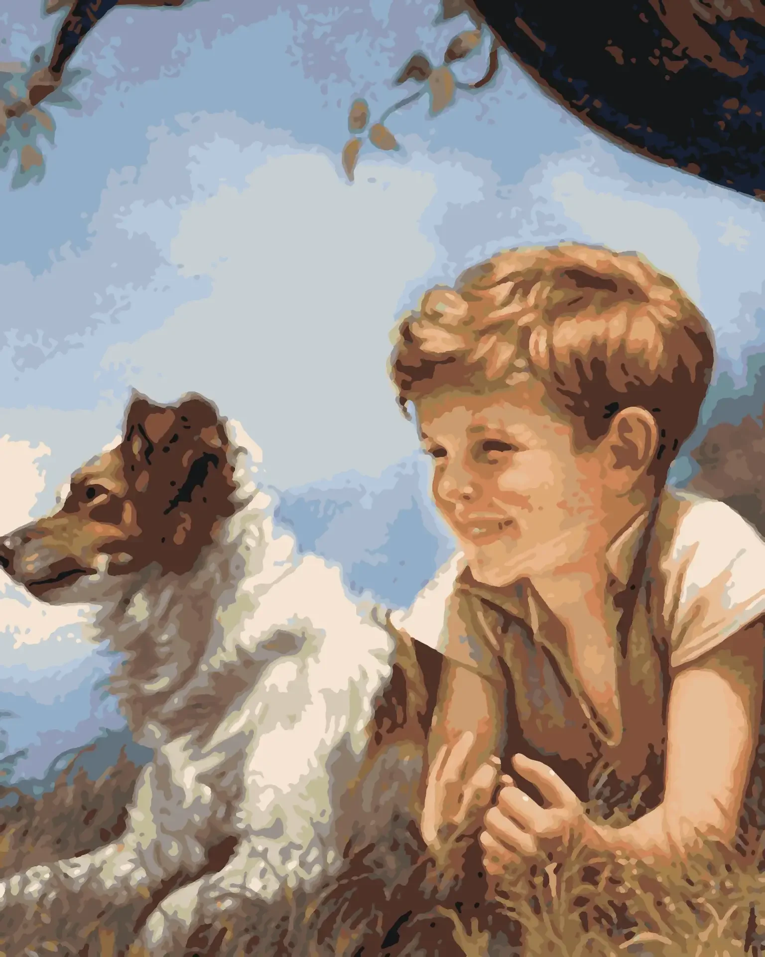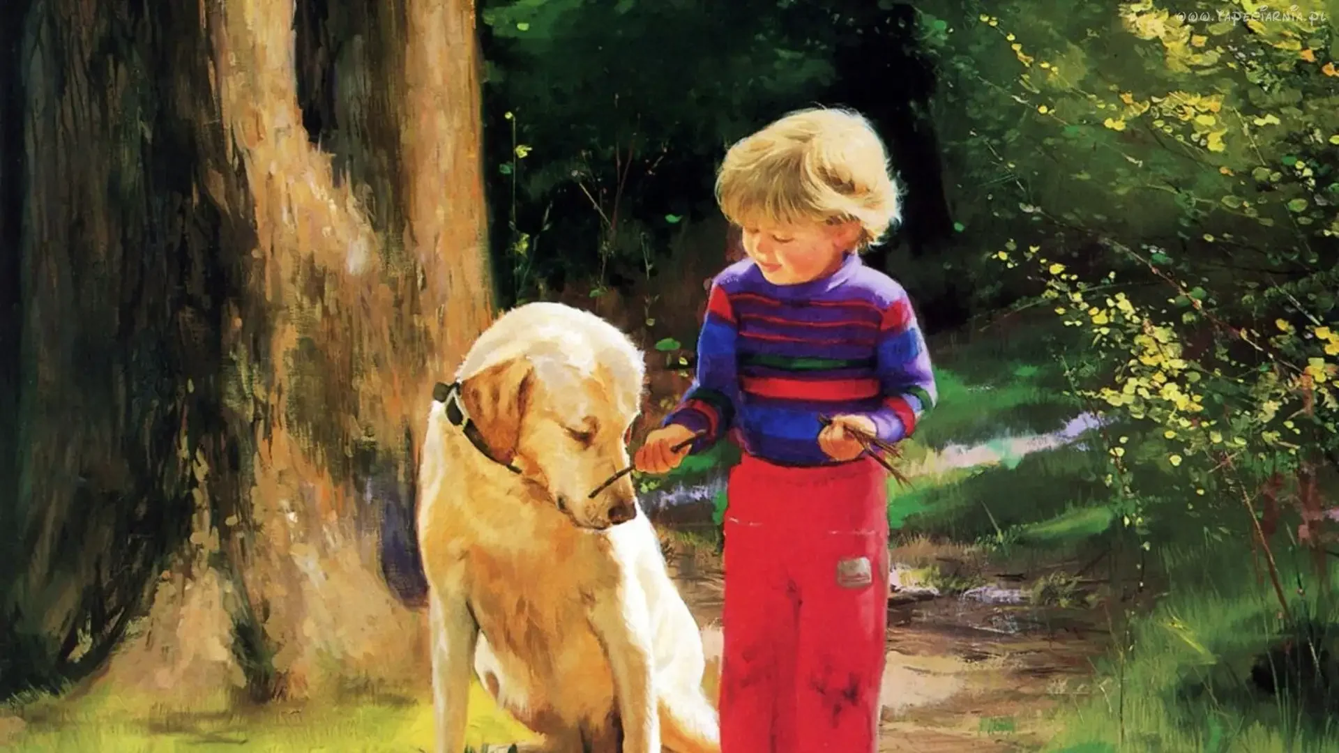 Живопись мальчик со щенком