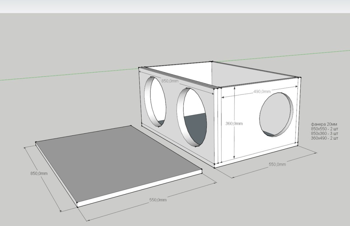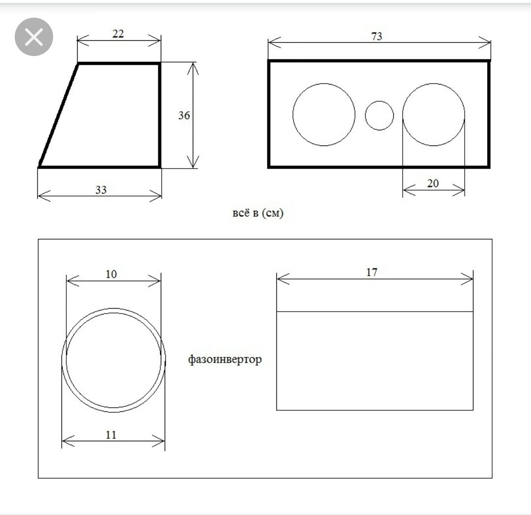 Короб под саб на 50 литров чертеж