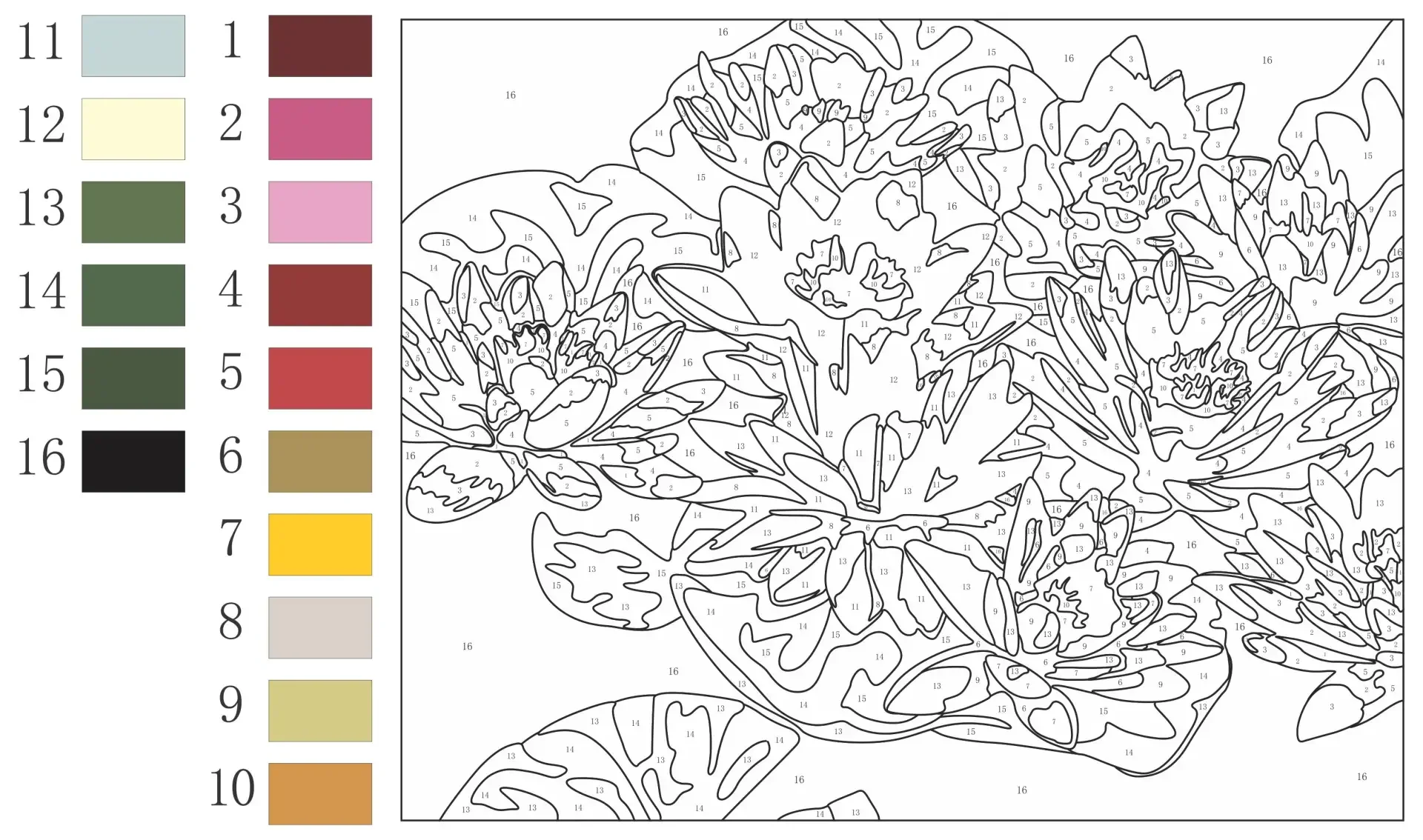 Раскраска по номерам цве