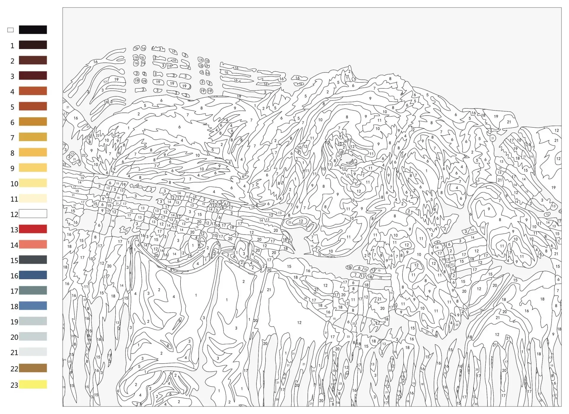 Сложные раскраски по номерам с палитрой