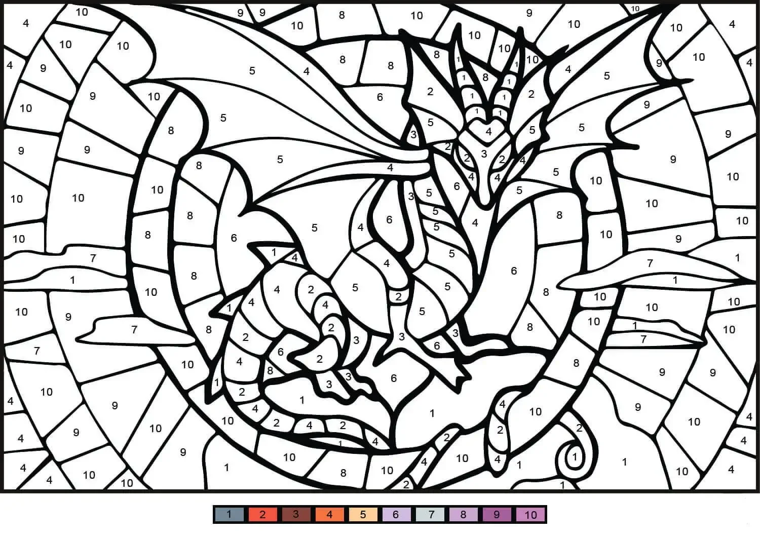 Раскраска по номерам дракон для детей