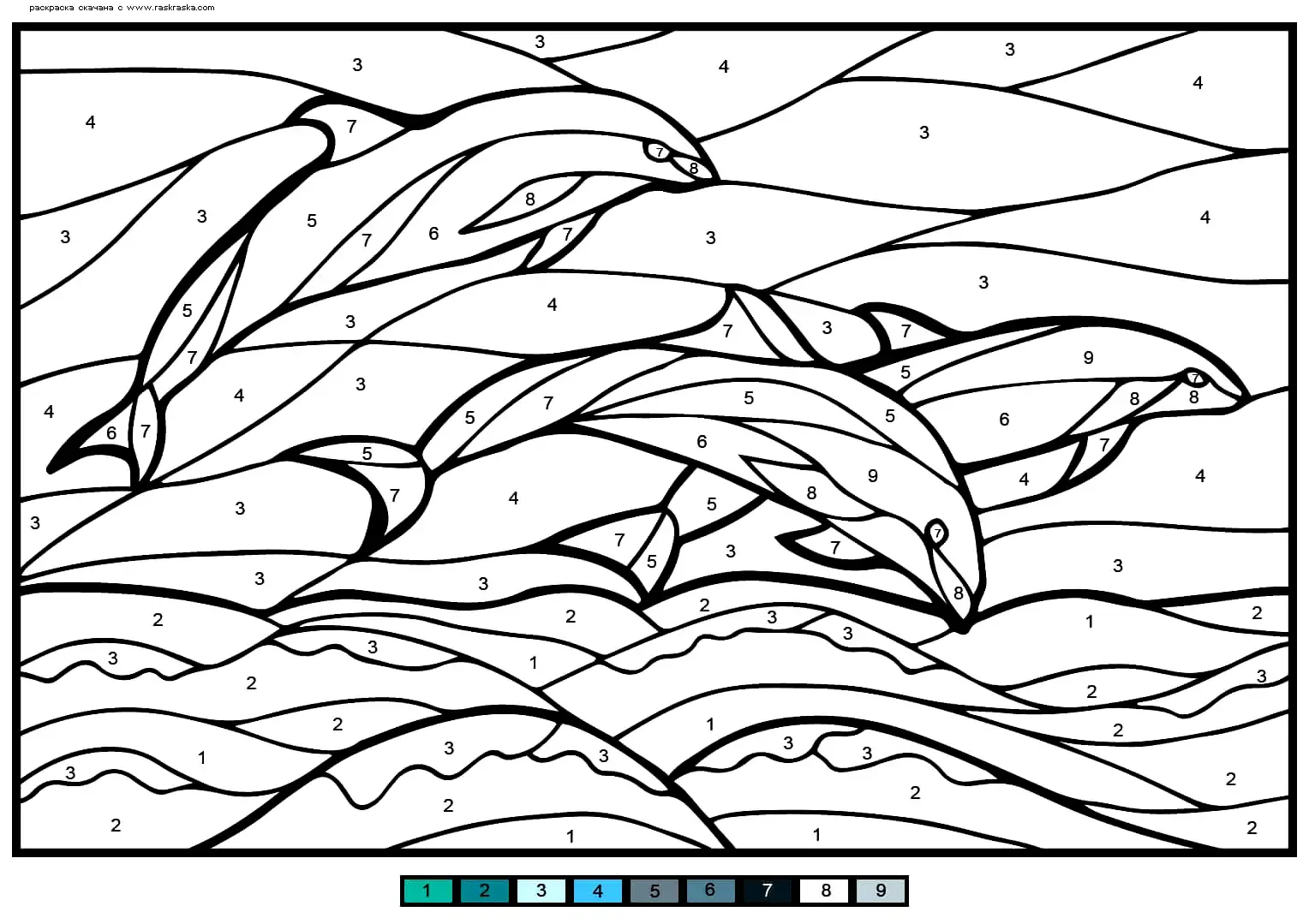 Раскраска по номерам дельфины