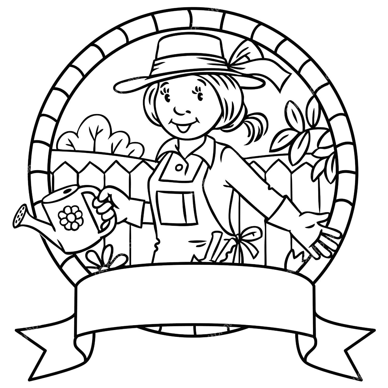 Садовница с лейкой раскраска