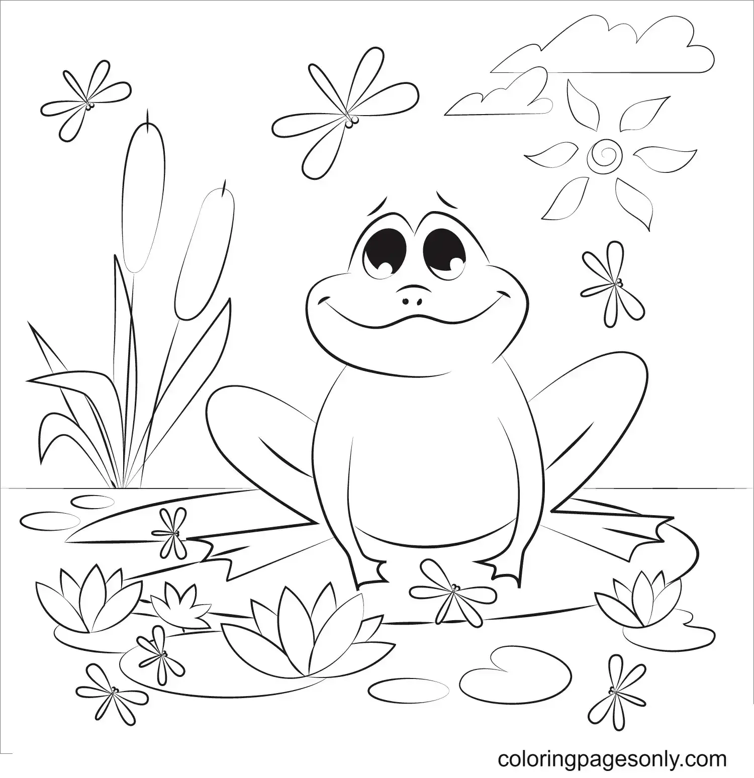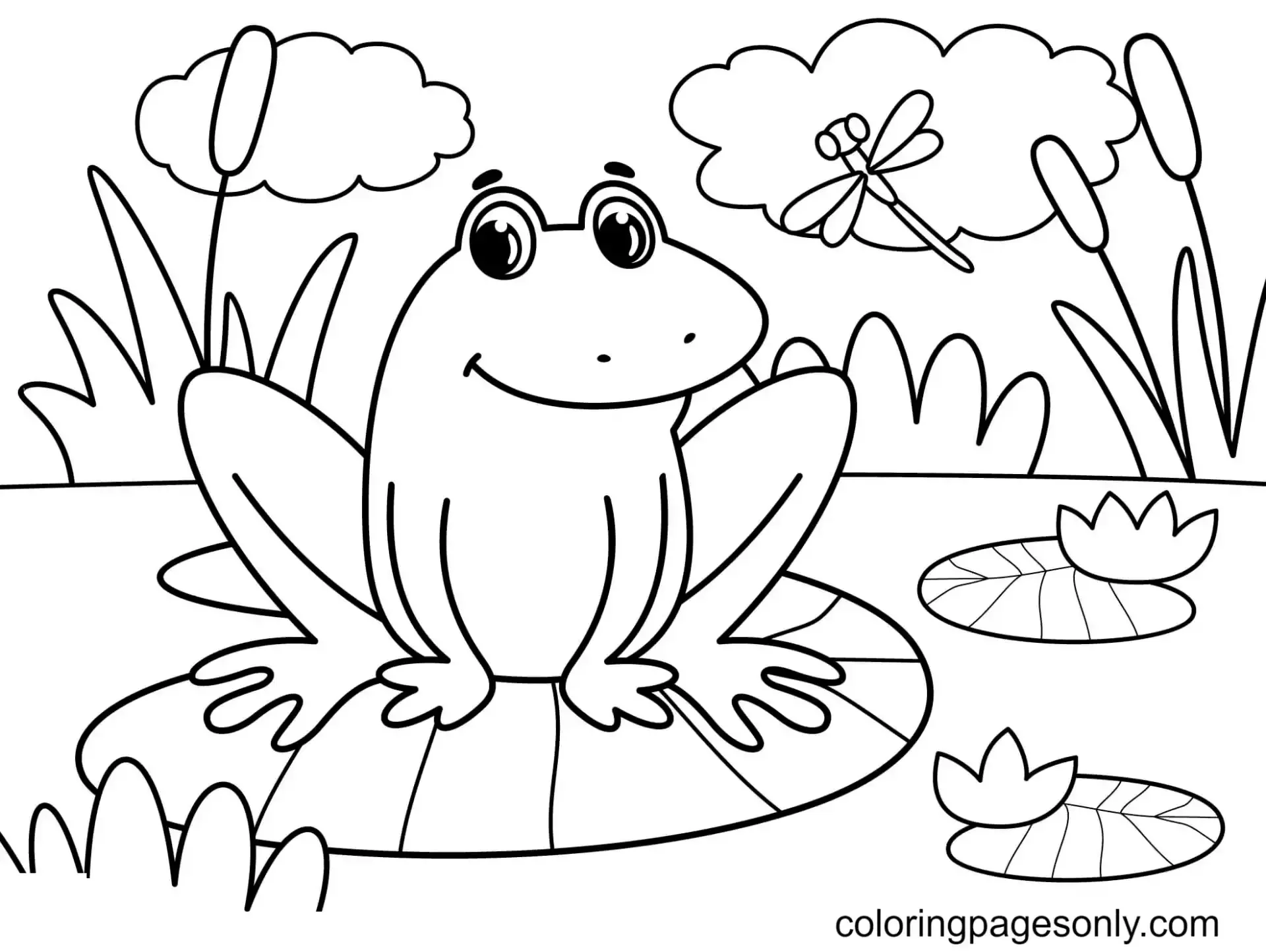 Раскраска лягушка на кувшинке