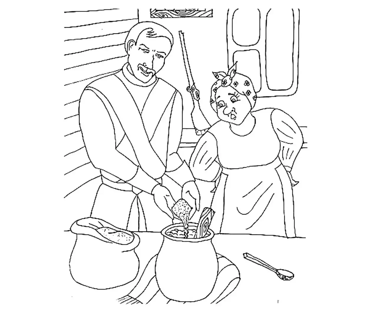 Раскраска к сказке каша из топора