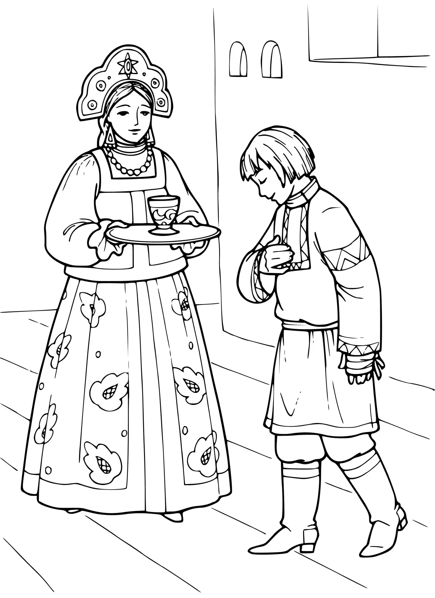 Костюм русском народном стиле раскраска
