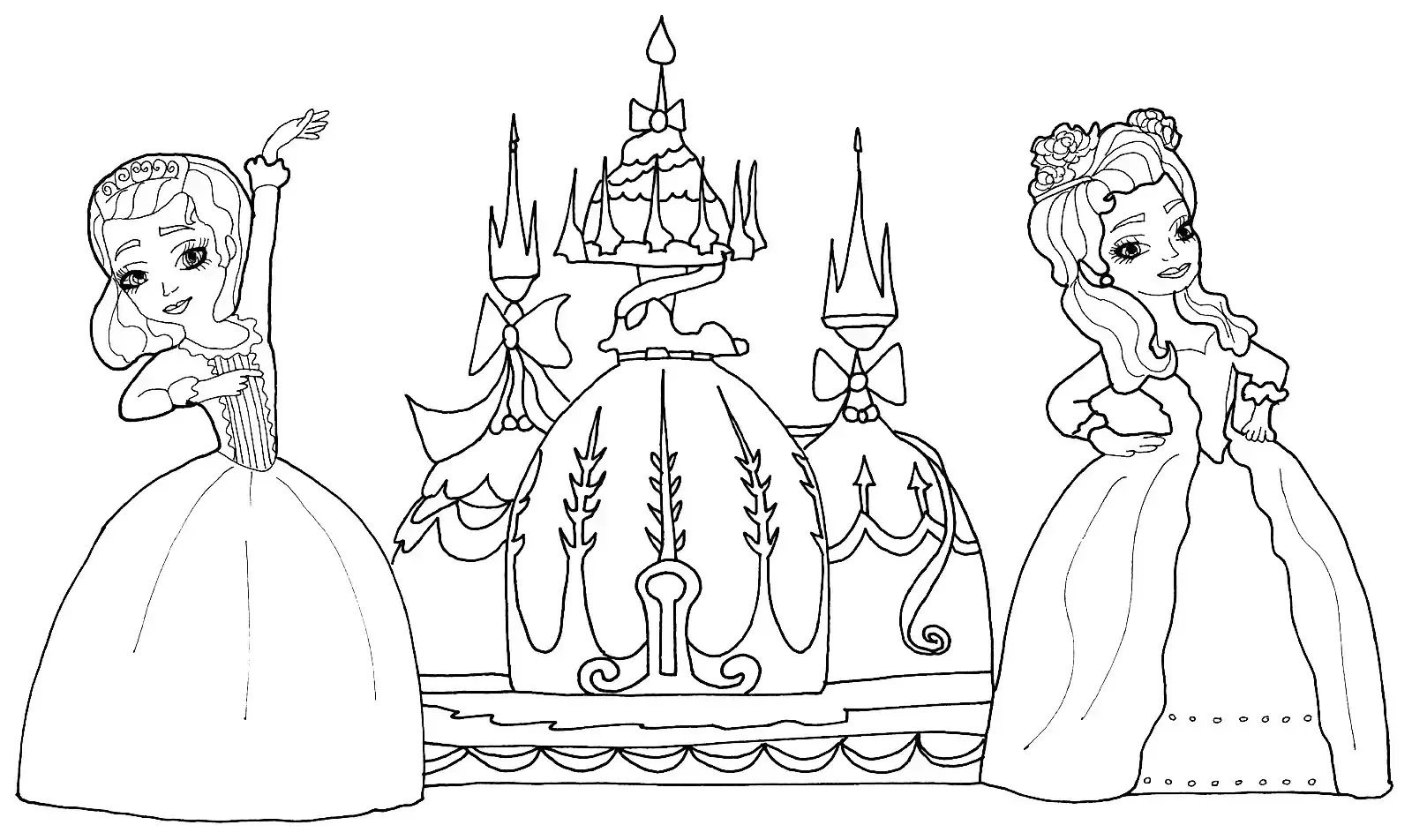 Раскраска принцессы вместе