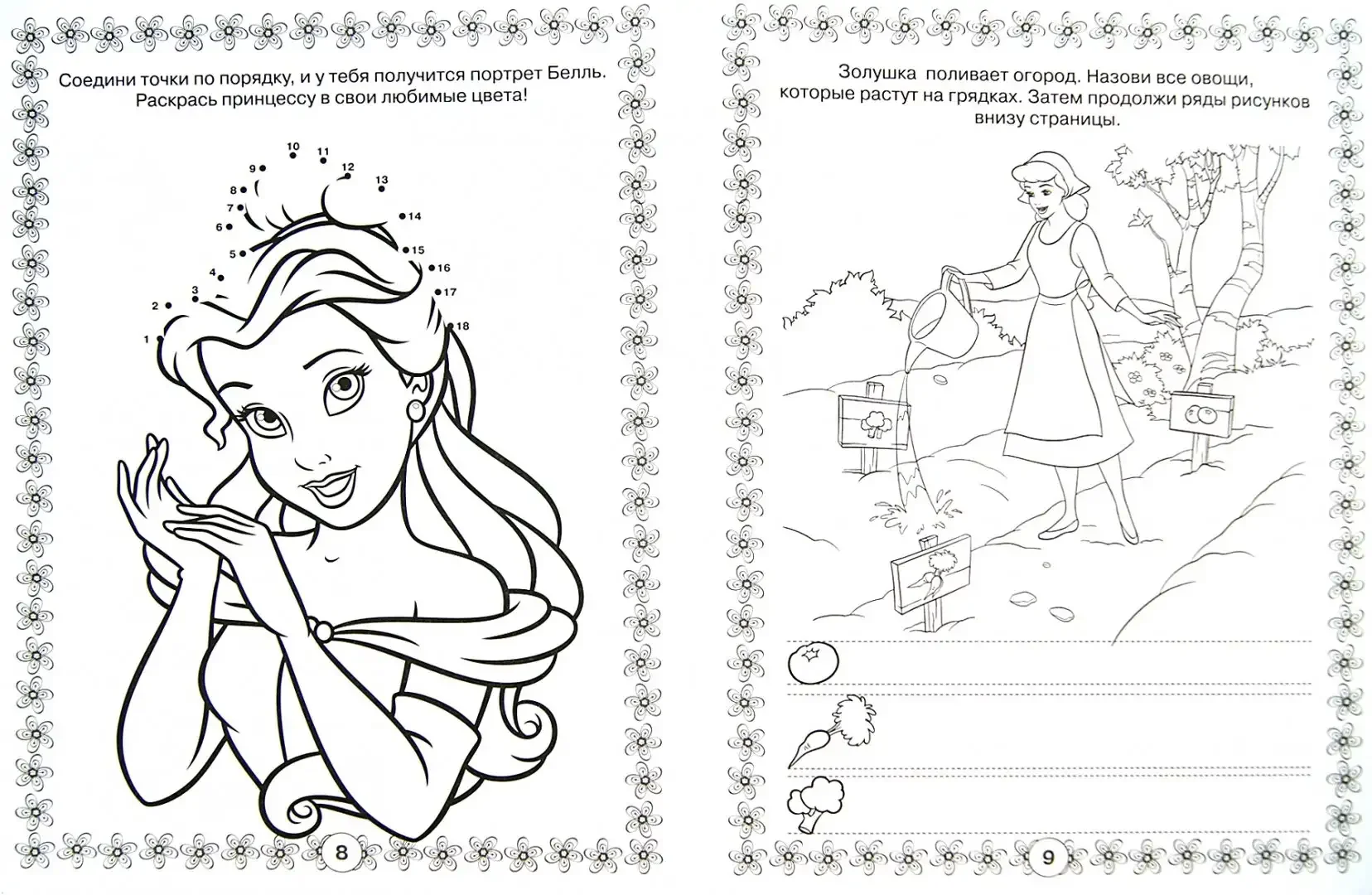 Принцесса с заданиями раскраска для детей