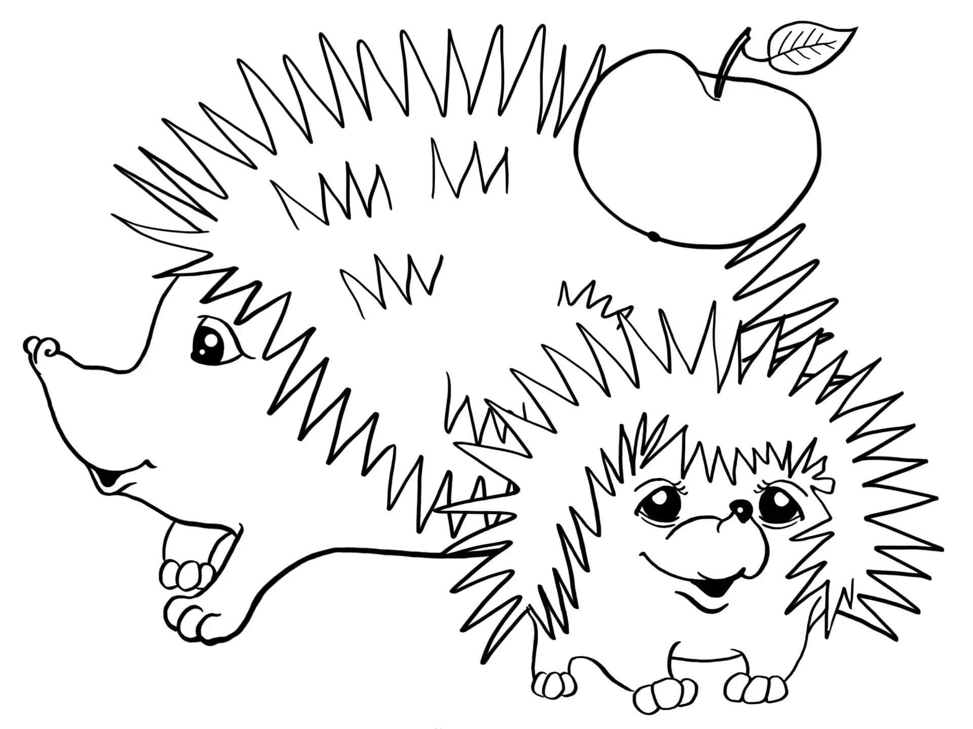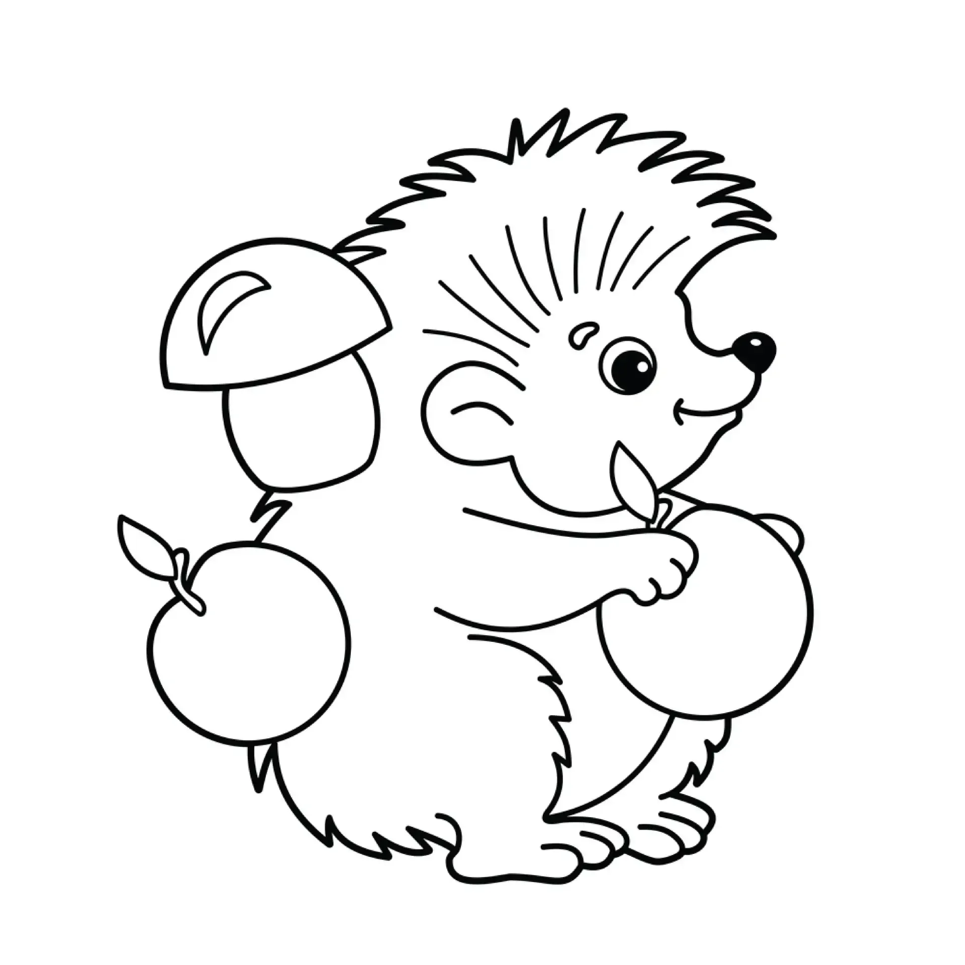 Ежик с яблоком раскраска
