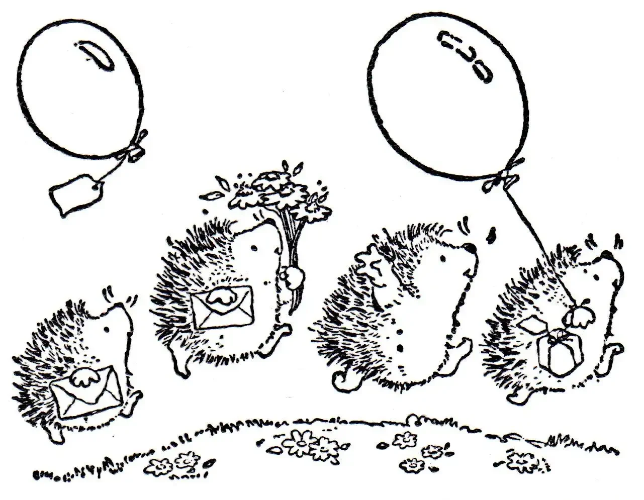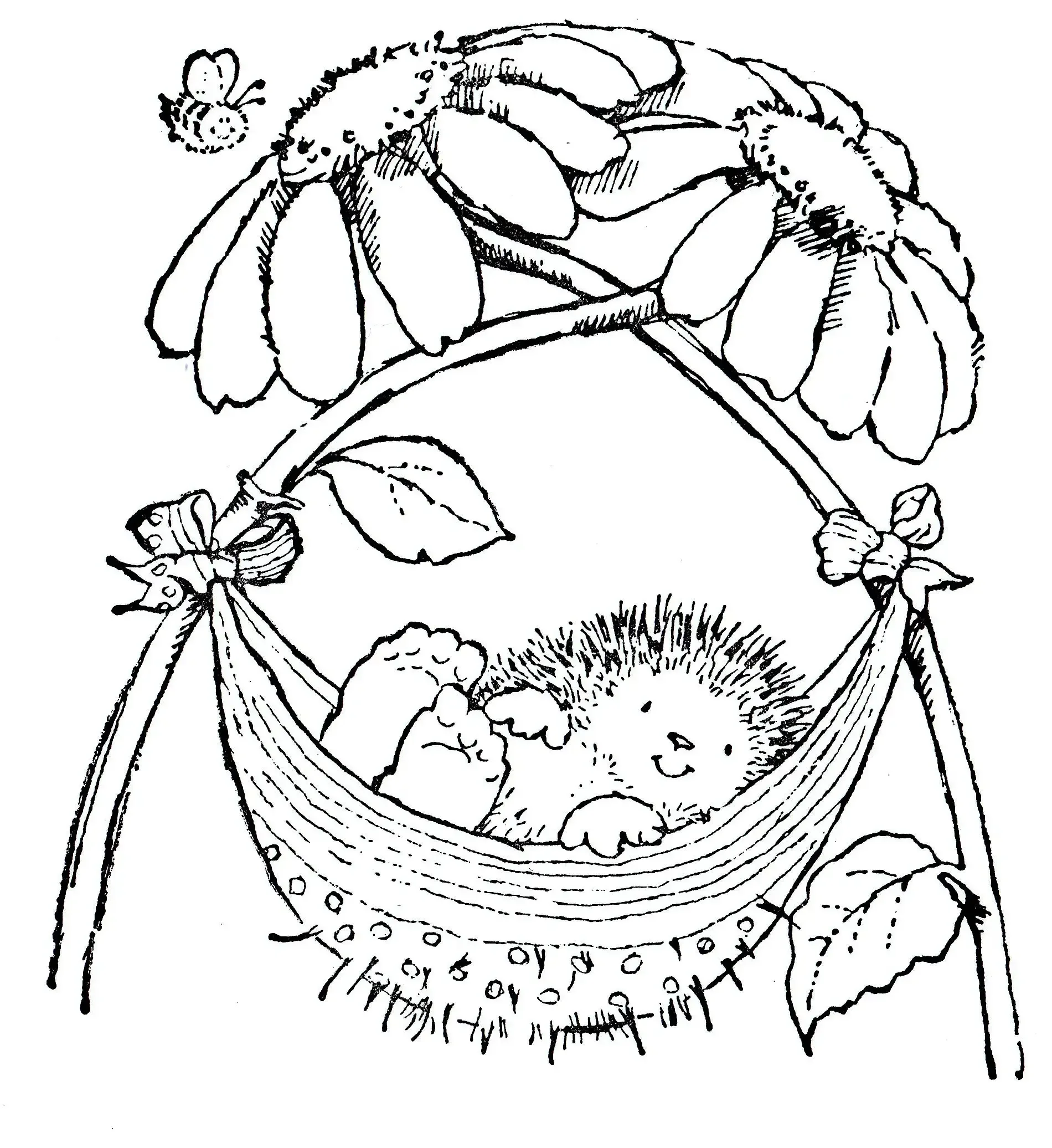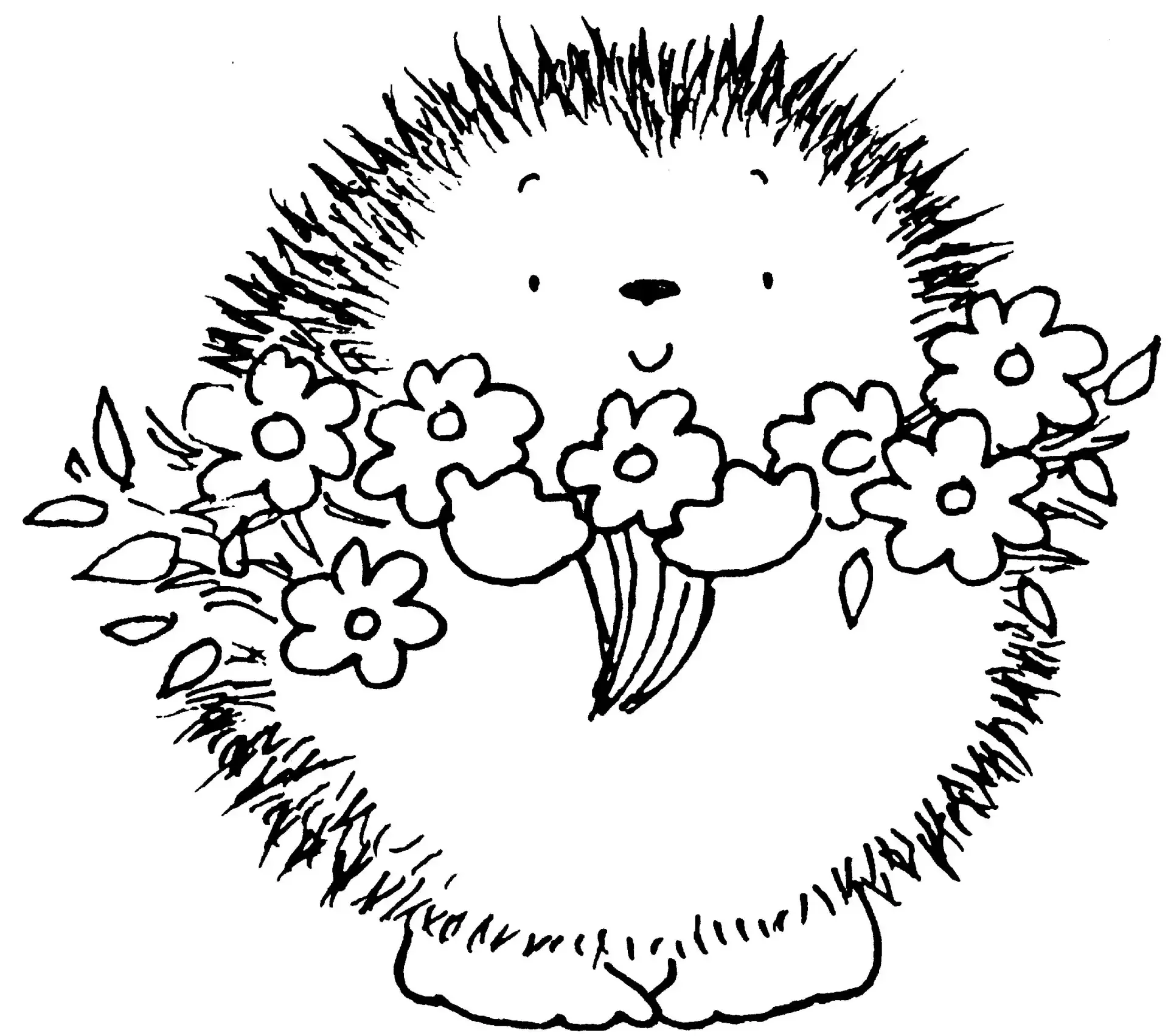 Ежик с цветами раскраска