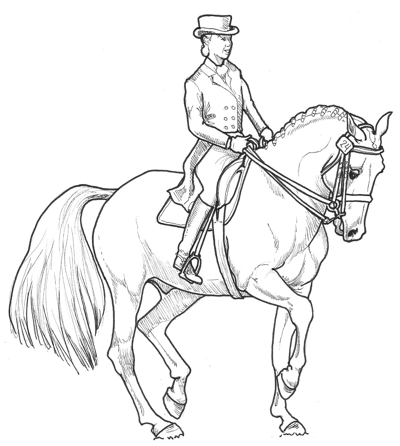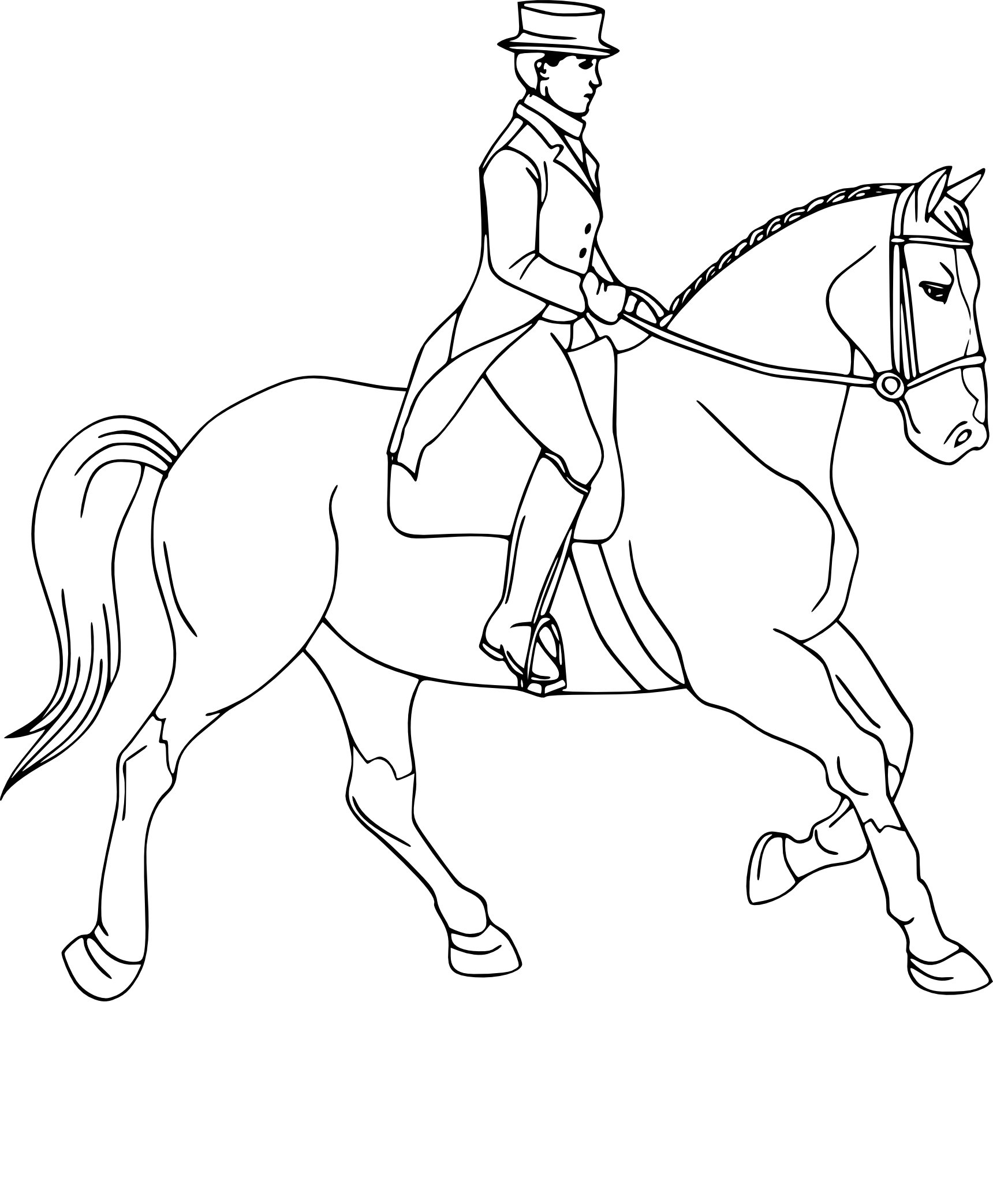 Раскраска лошадь с наездником