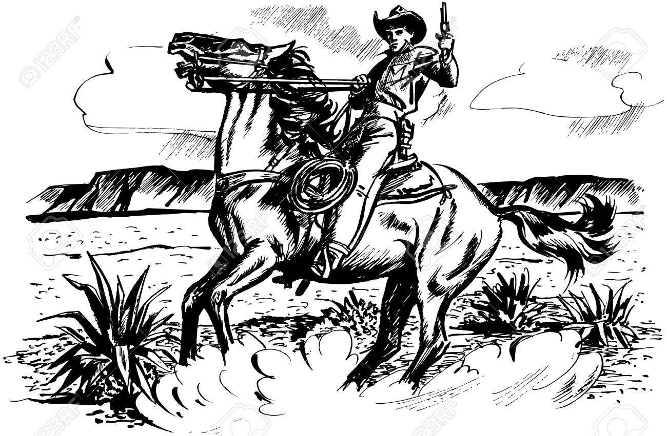 Раскраска ковбой на лошади