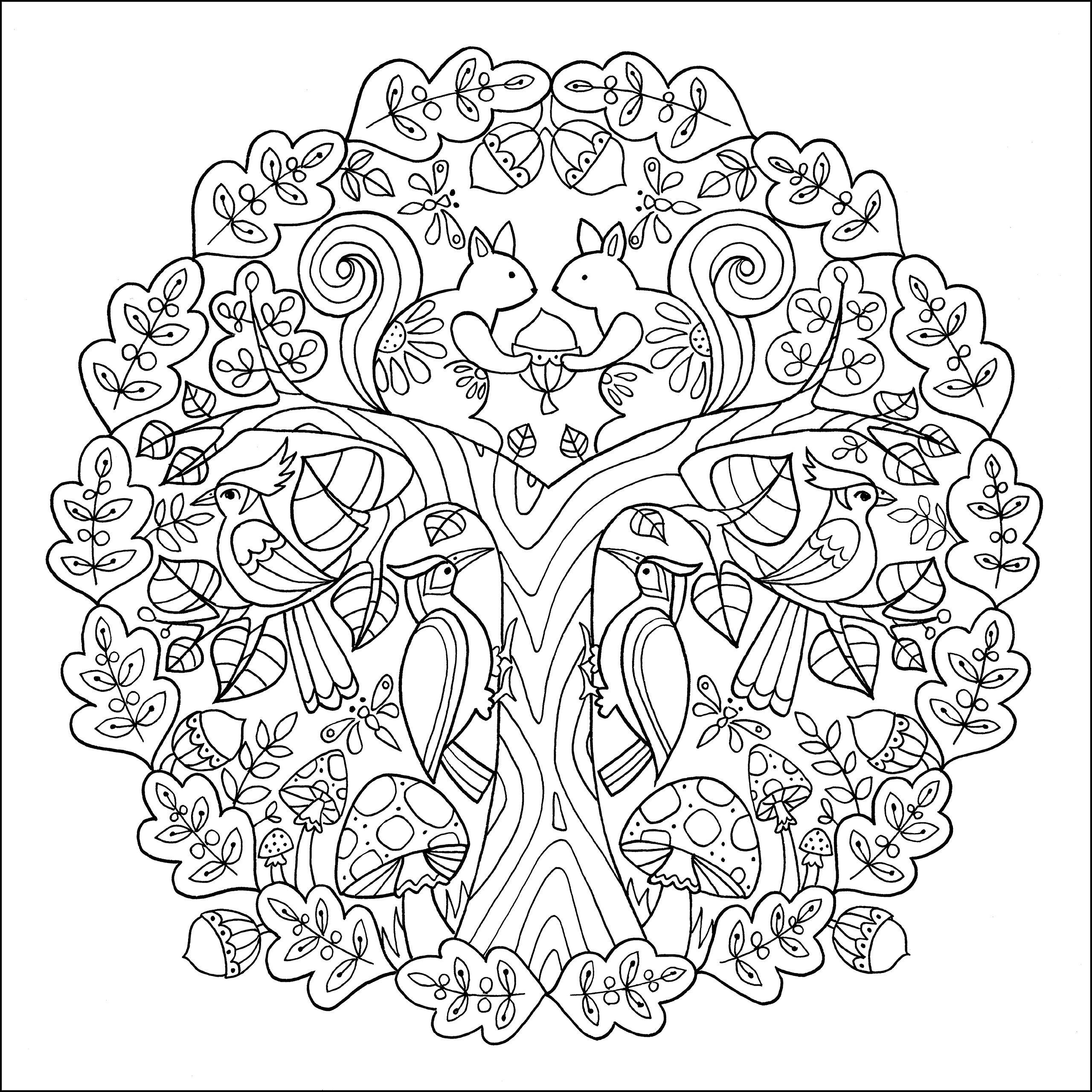 Мандала для раскрашивания дерево