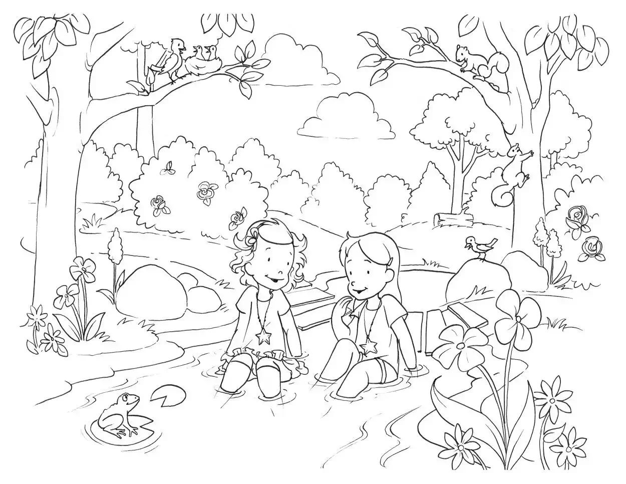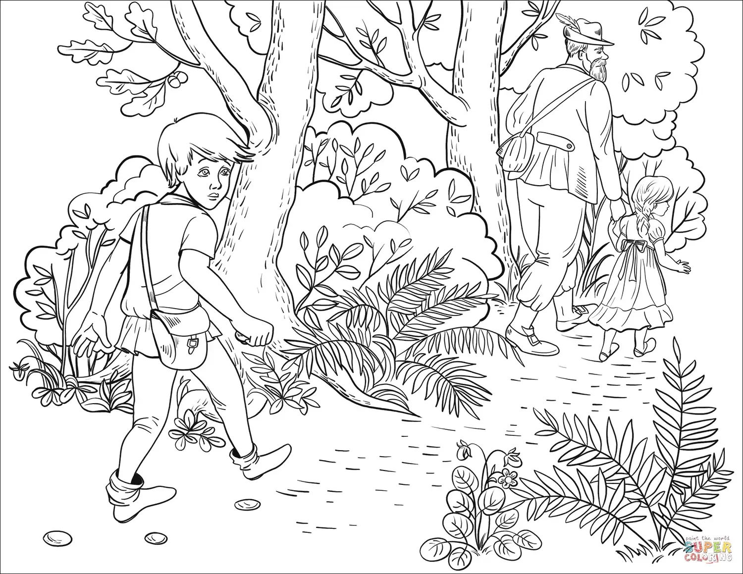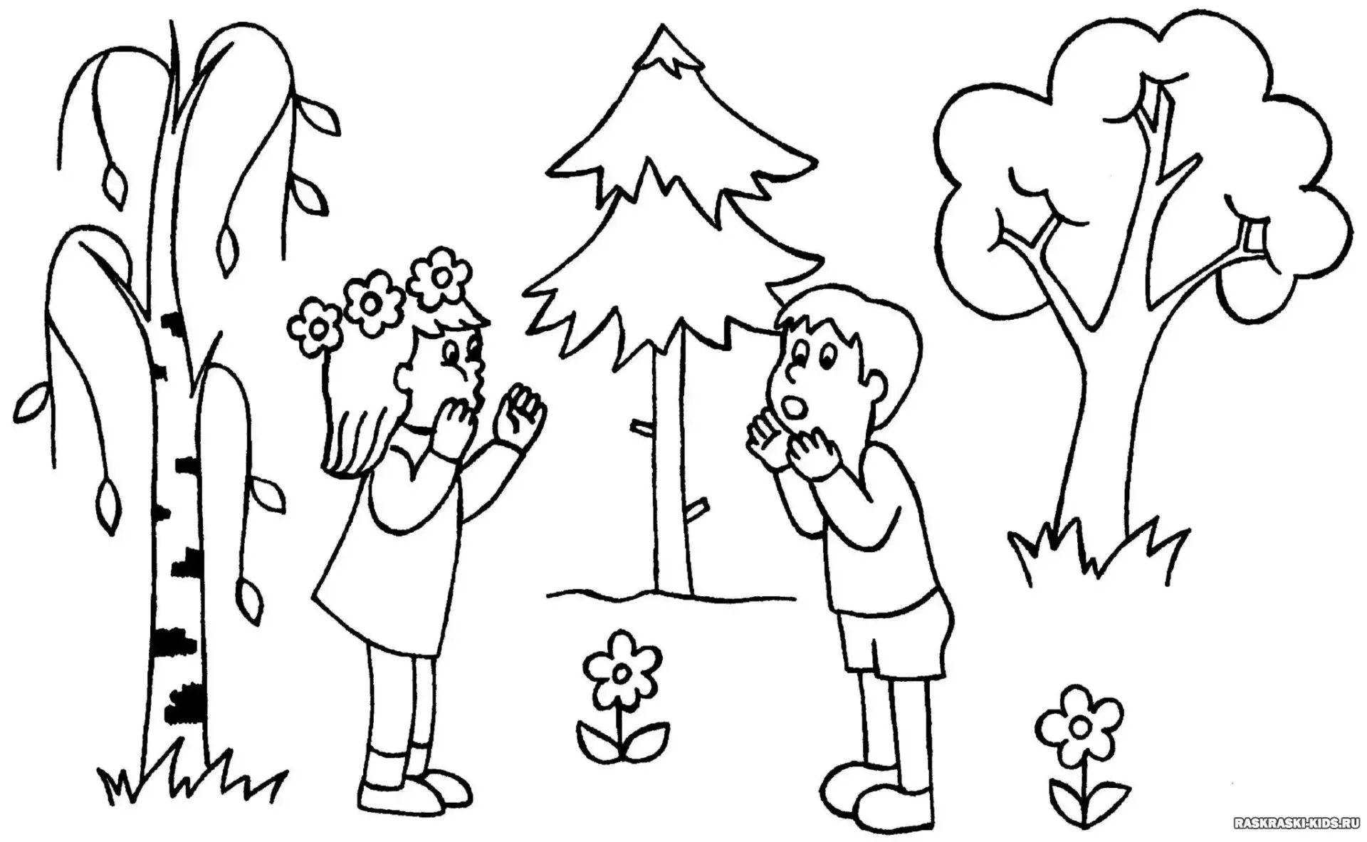 Дети в лесу раскраска для детей