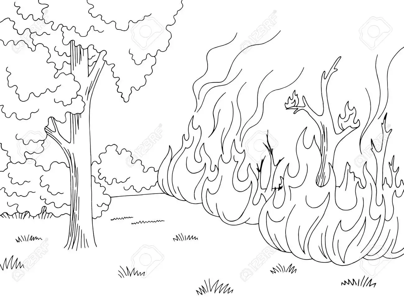 Раскраска пожар в лесу для детей