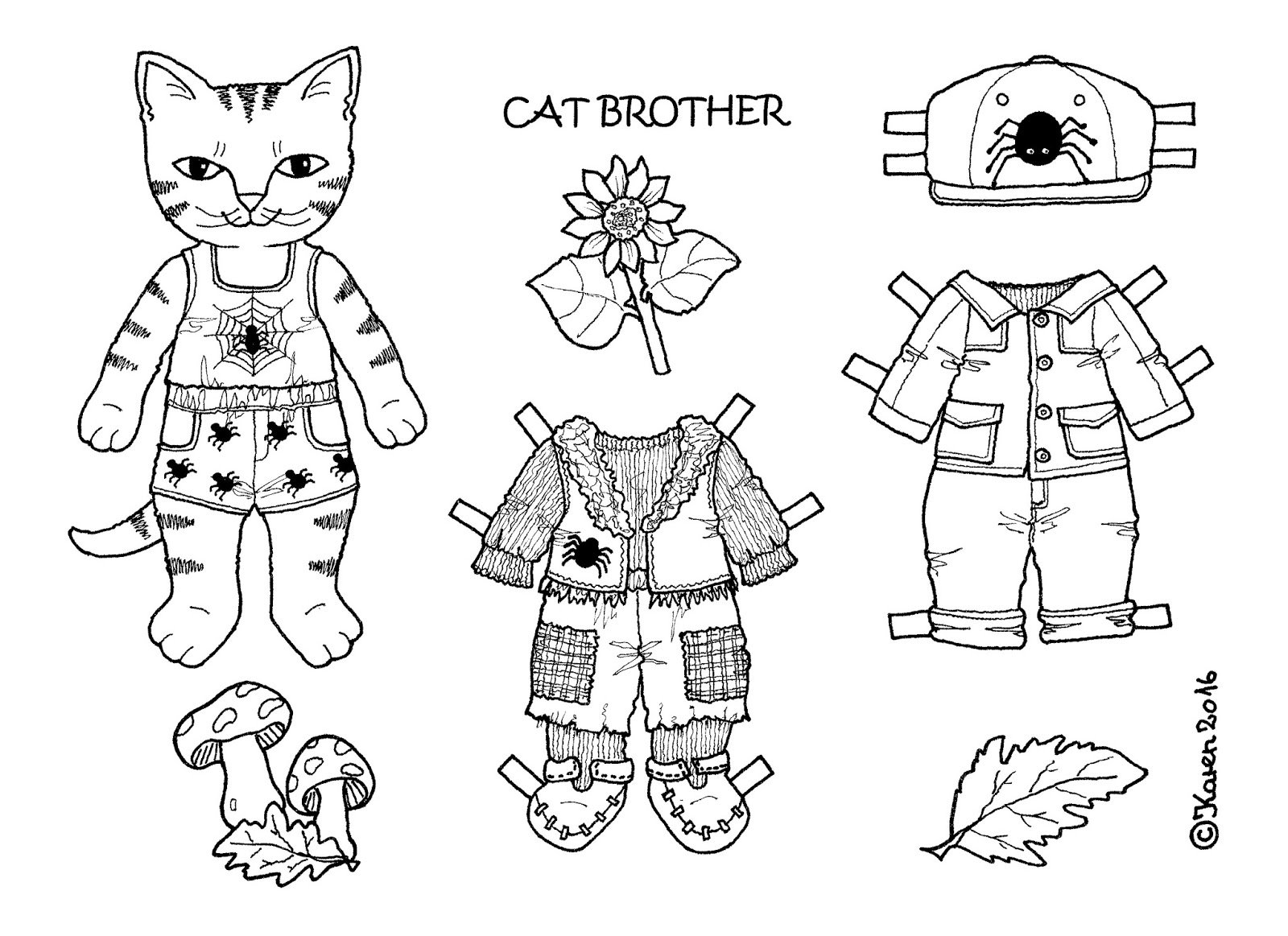 Раскраска котик с одеждой