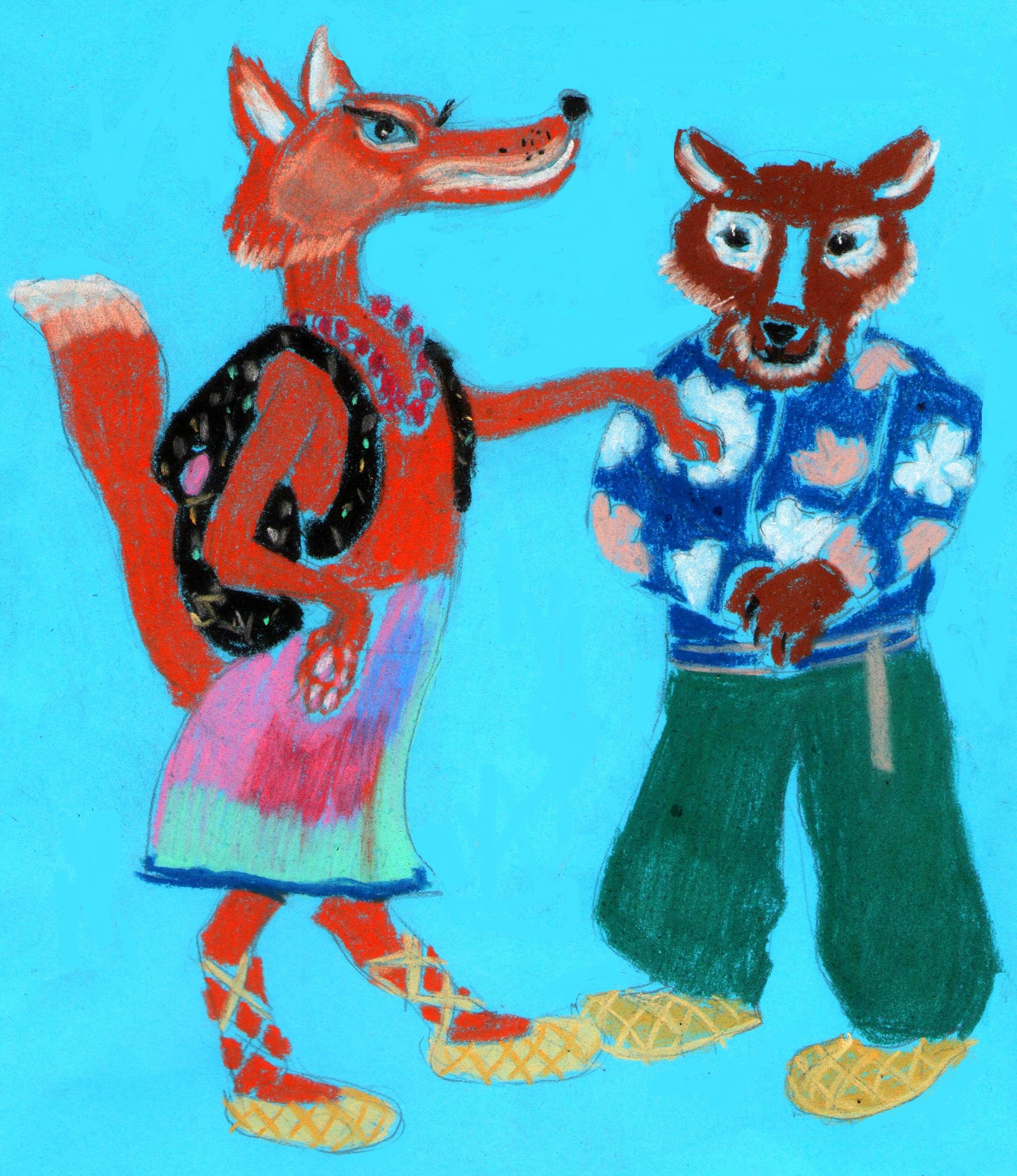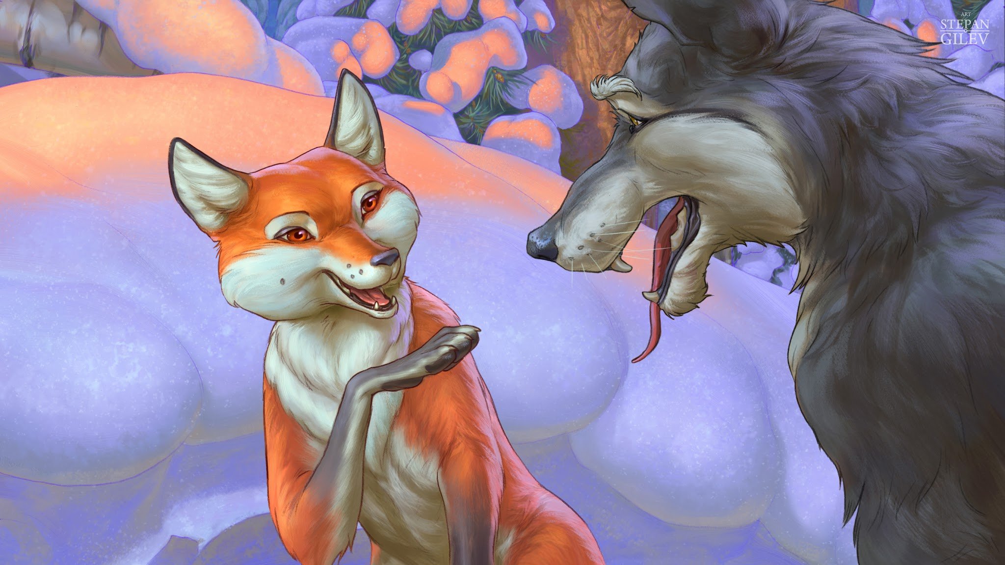 Лиса и волк рисунок