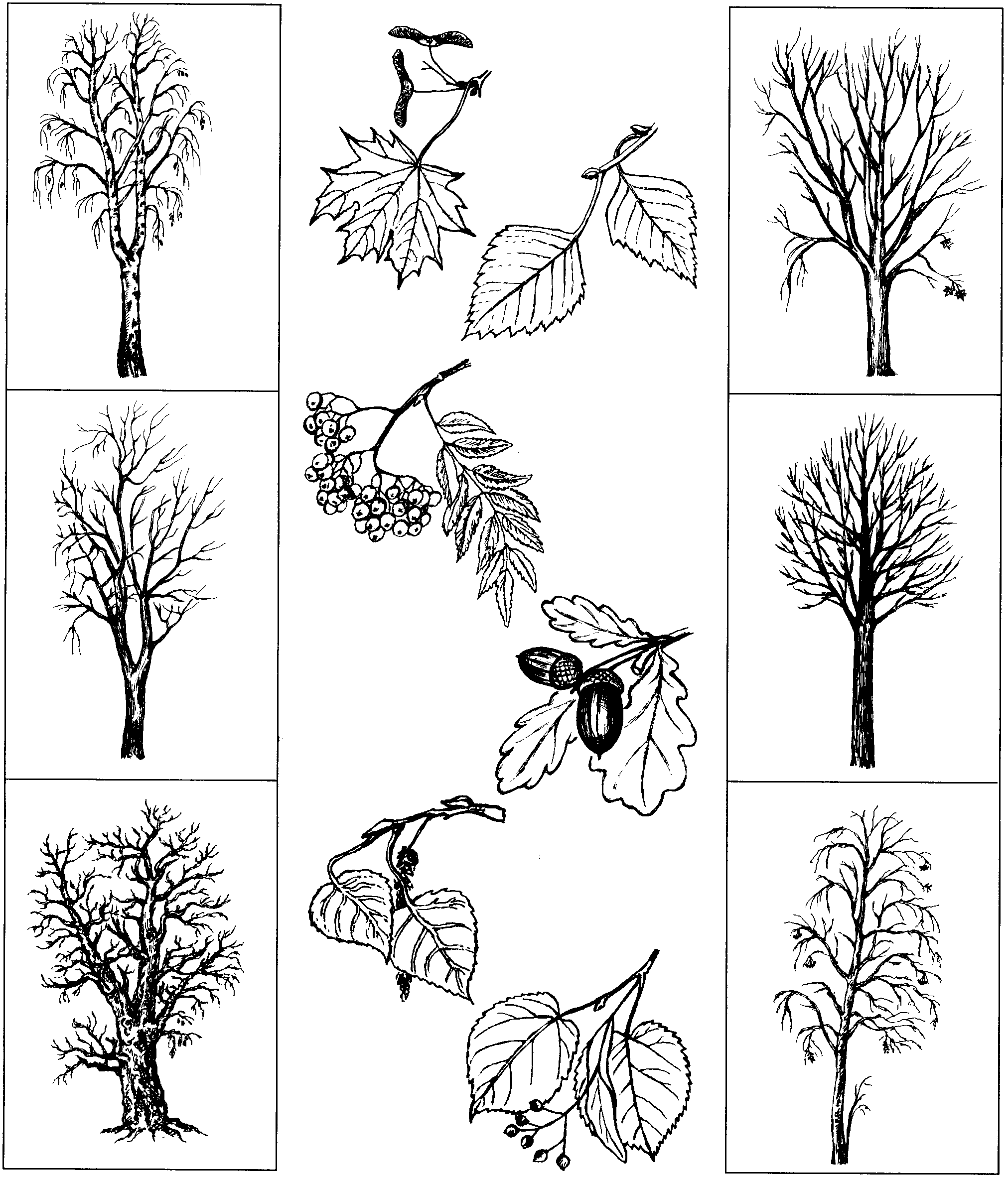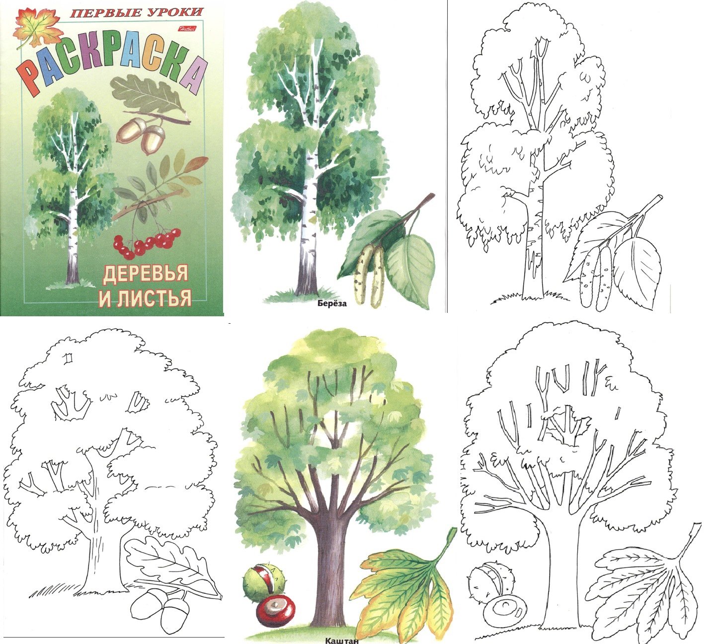 Лиственные деревья раскраска