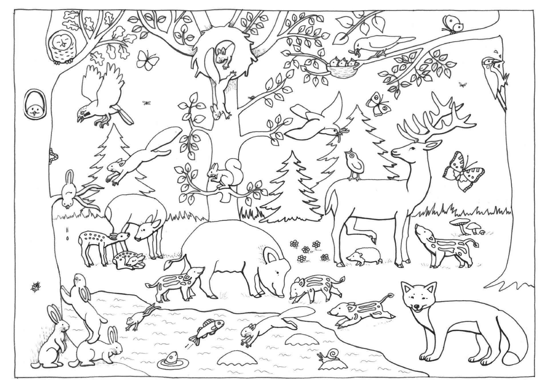 Раскраска лес с животными