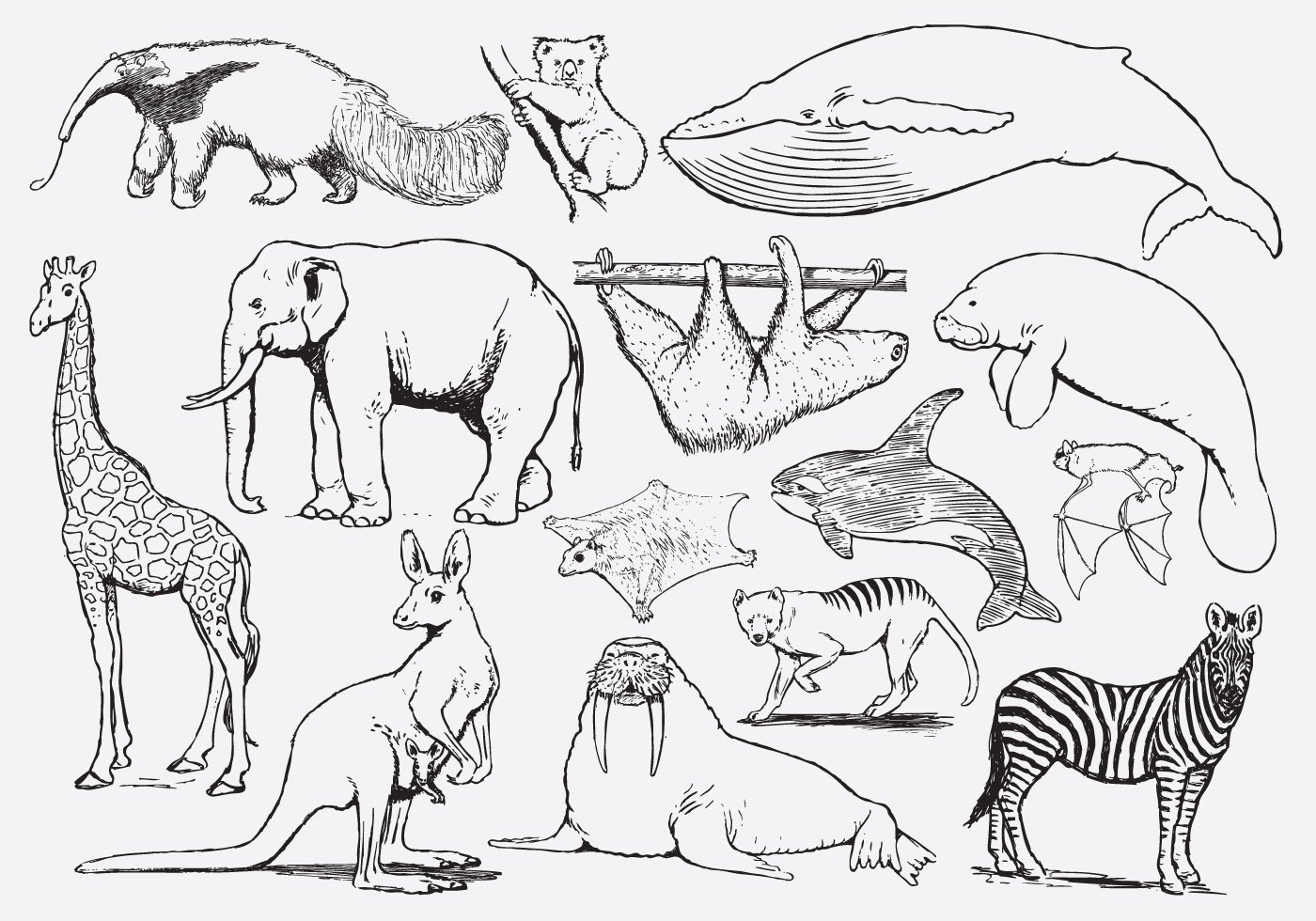 Разные животные черно белые
