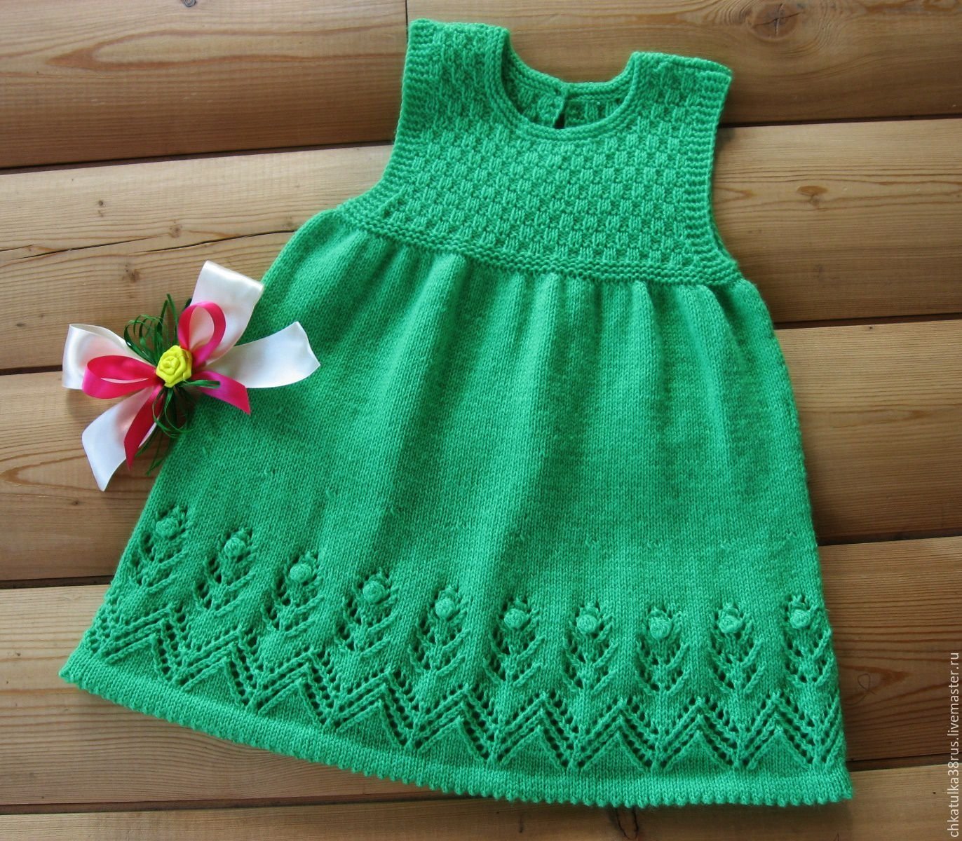 Вязаное детское платье спицами