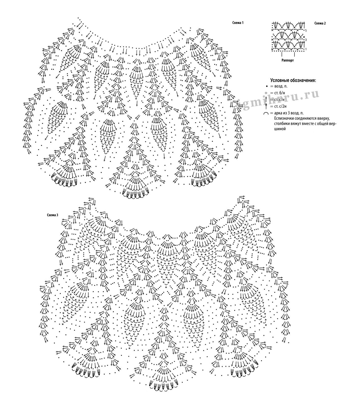 Ажурные узоры крючком со схемами кокетка