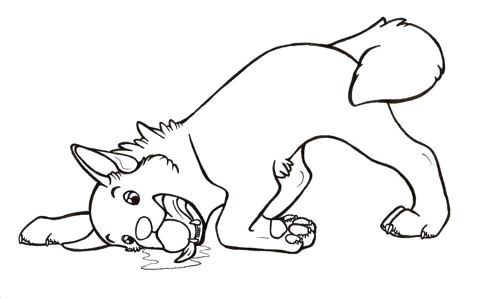 Щенок с мячиком раскраска