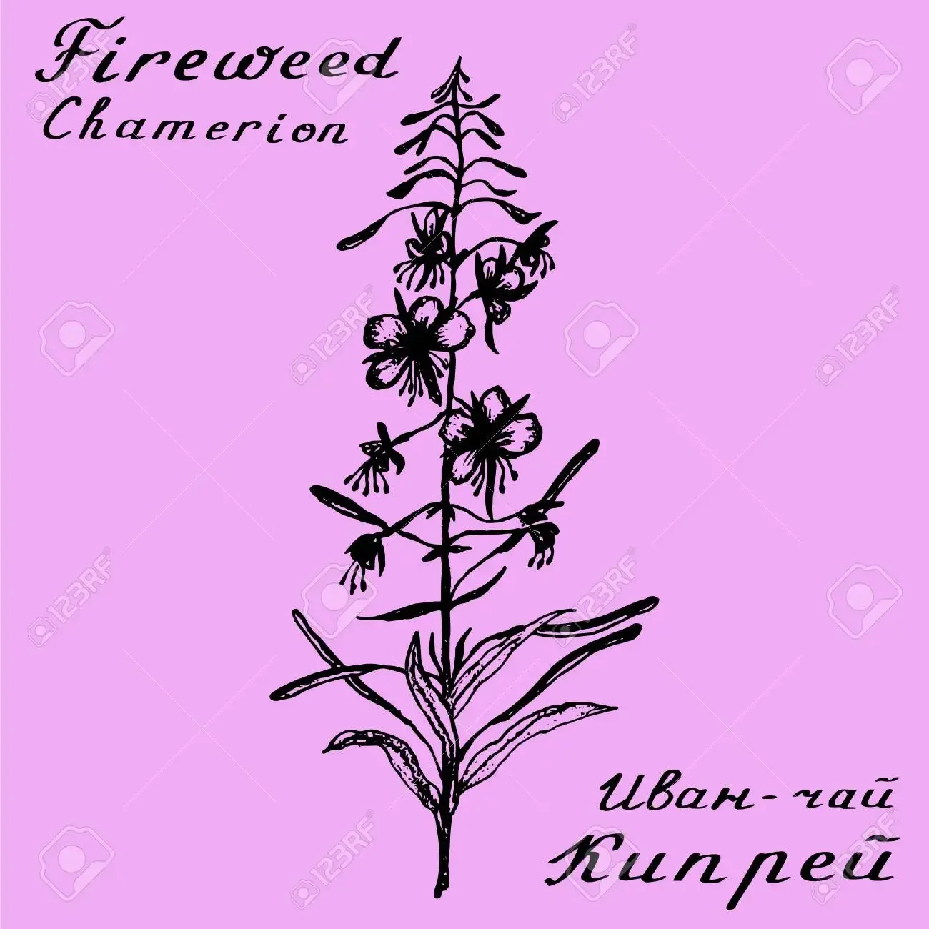 Иван чай Ботанический рисунок