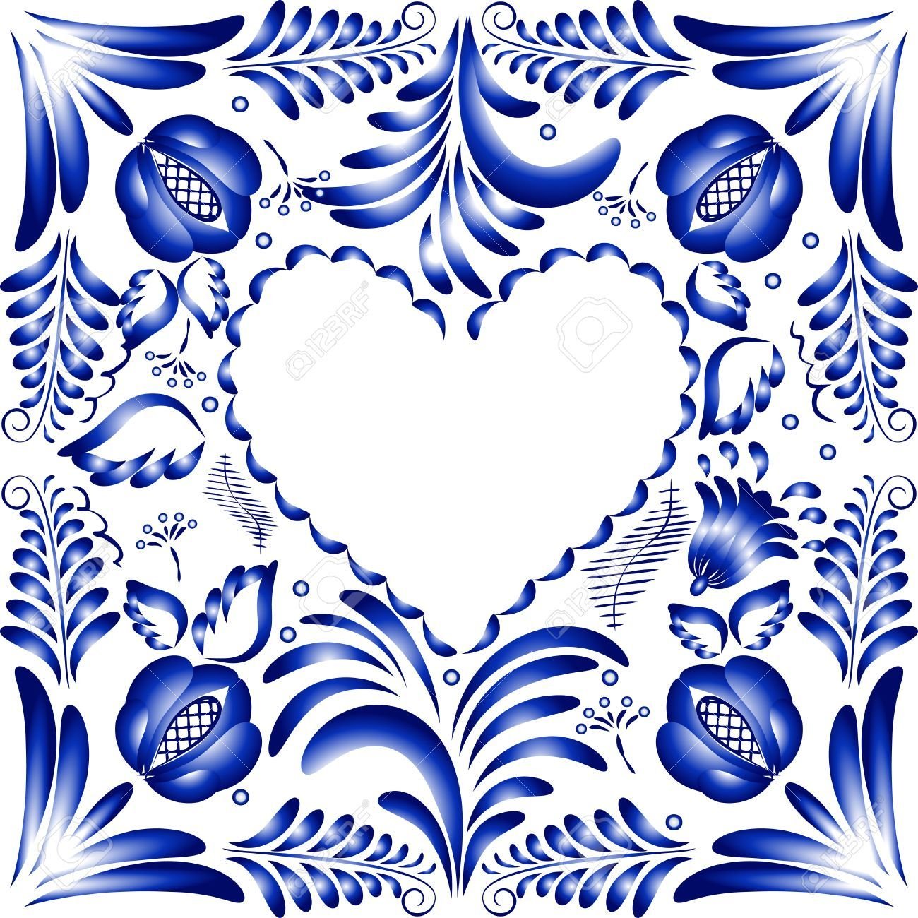Трафарет рамки картин русской Гжели