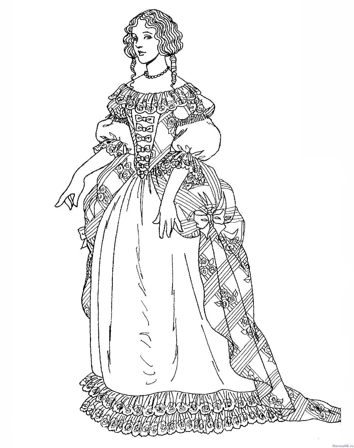 Исторический костюм раскраска