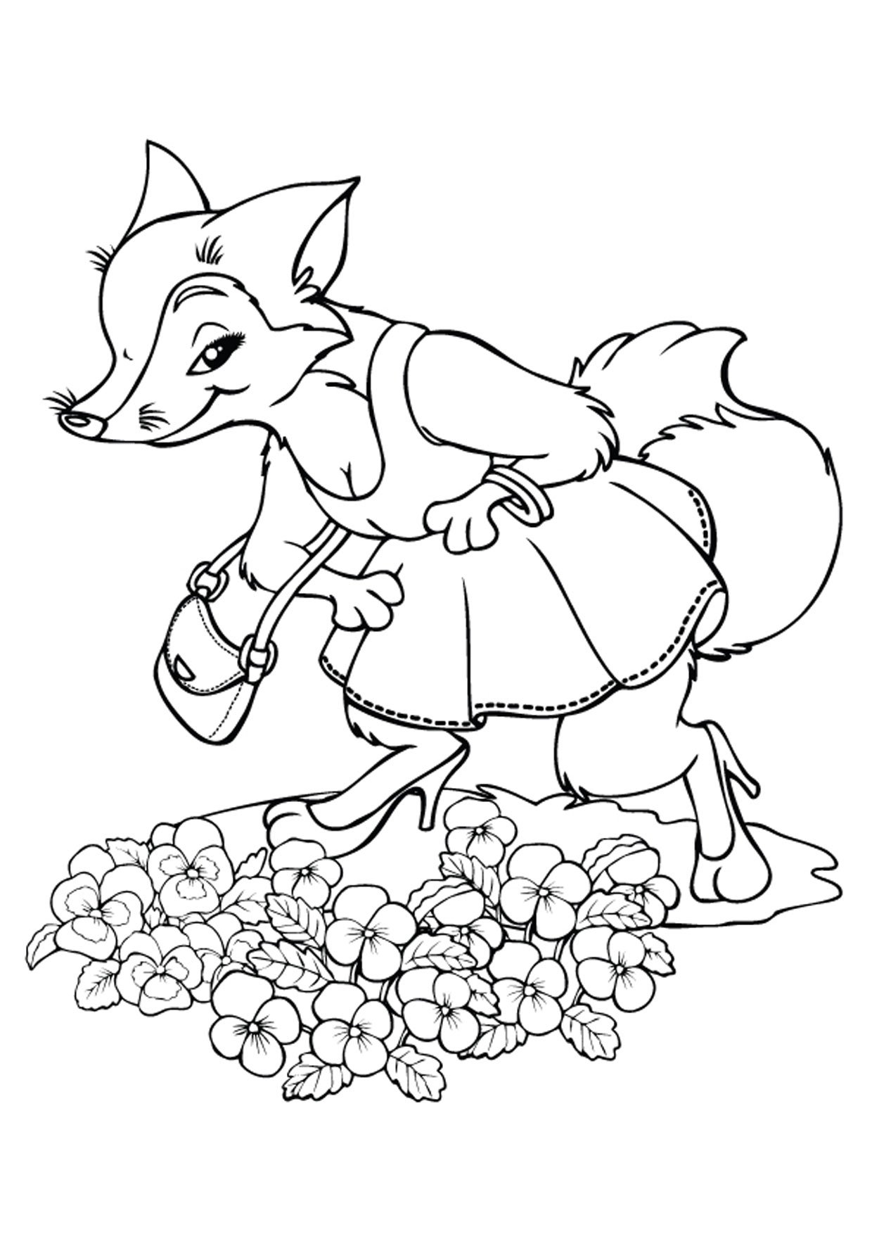 Лисичка в платье раскраска