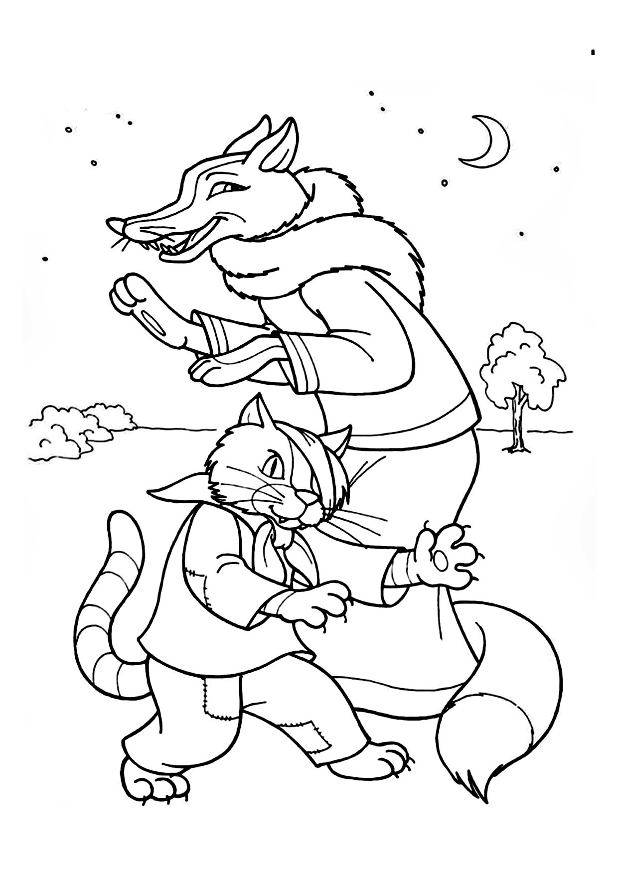 Сказка кот и лиса раскраска