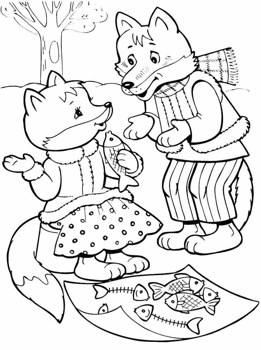 Раскраски к сказке Лисичка сестричка и серый волк