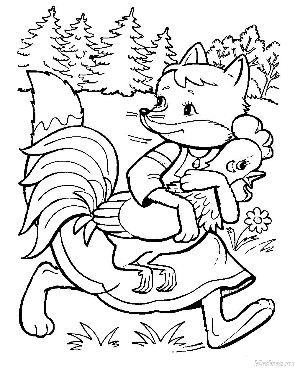 Раскраска к сказке кот петух и лиса для детей