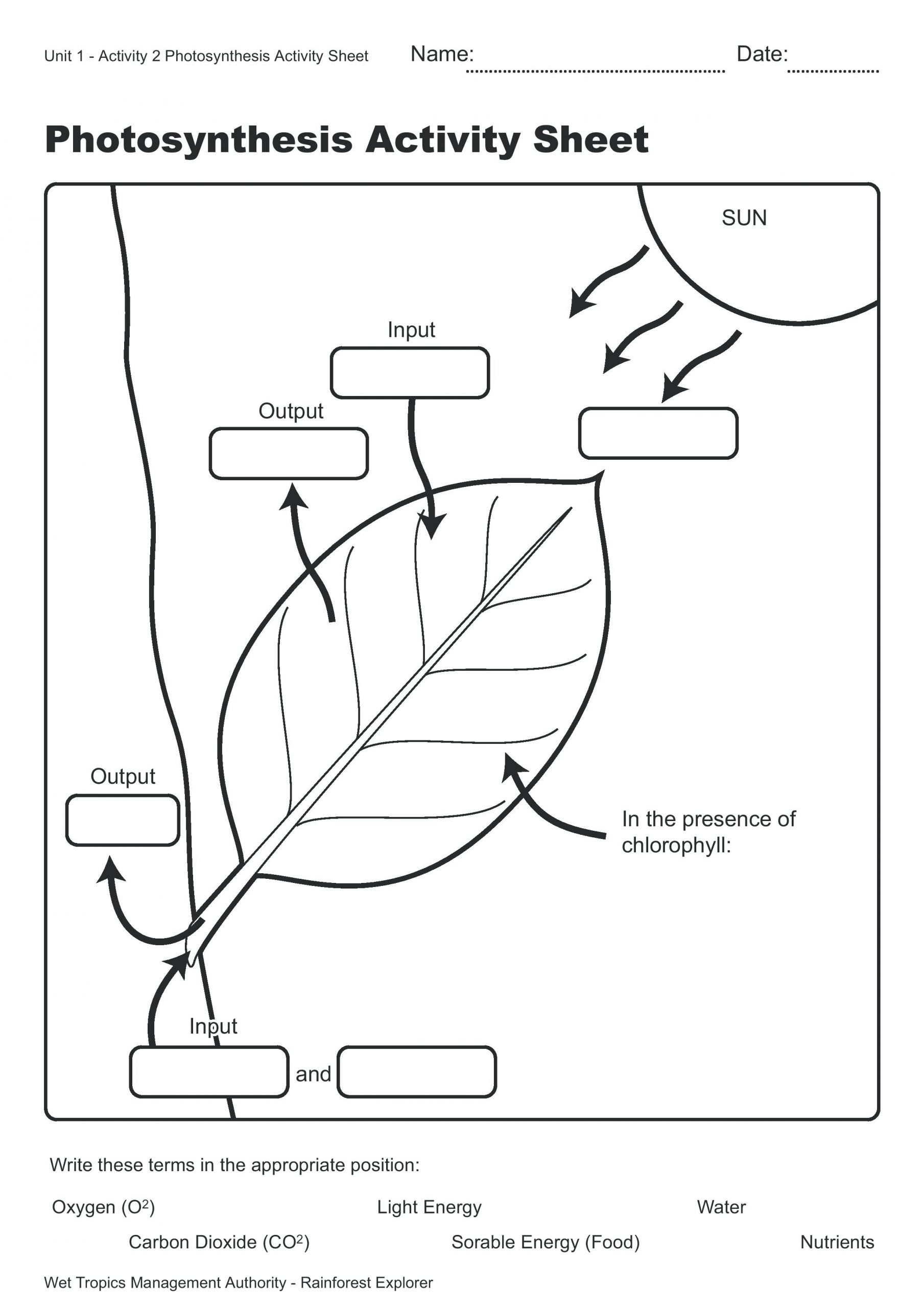 Photosynthesis Worksheet