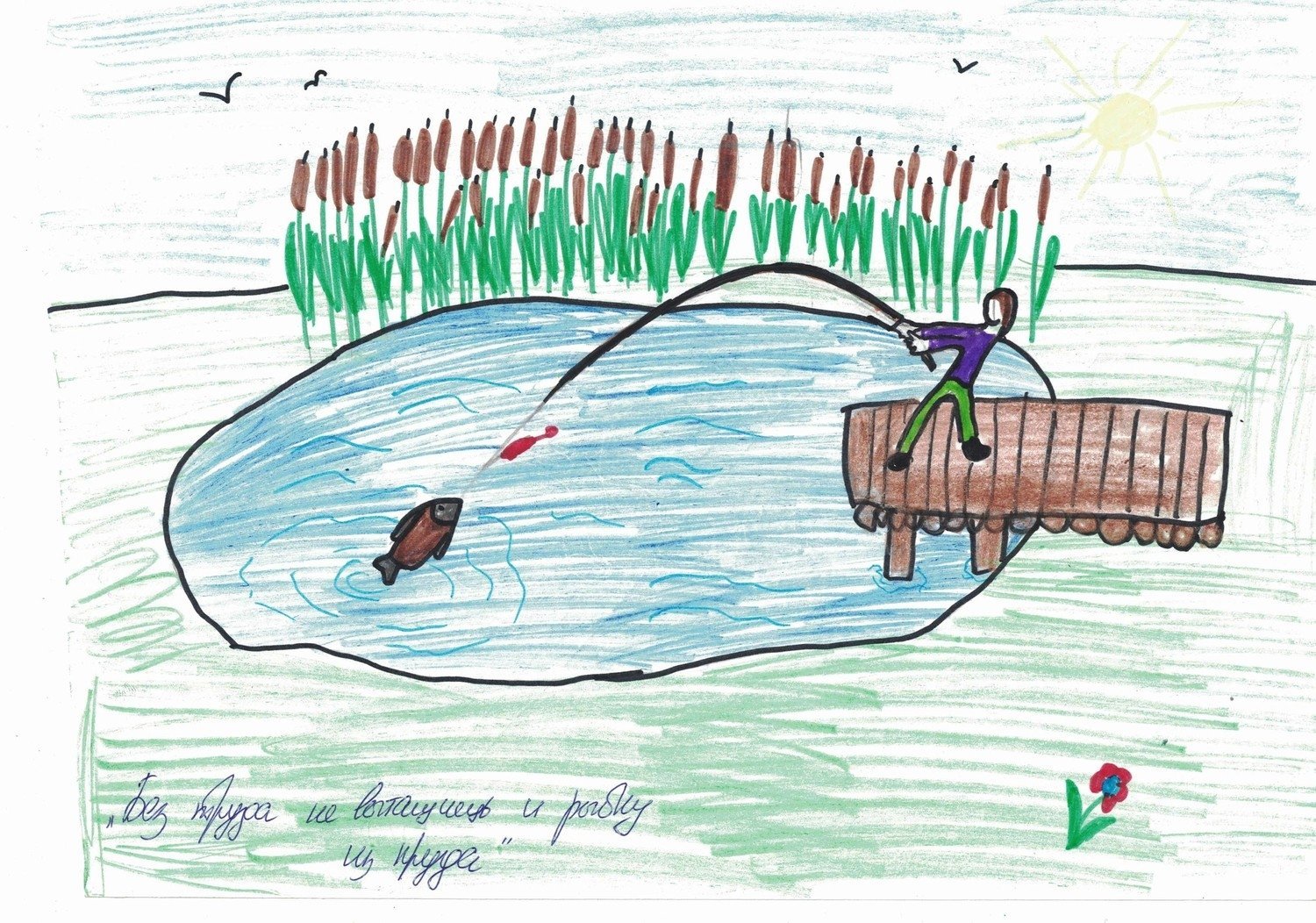 Иллюстрация к пословице без труда не выловишь и рыбку из пруда