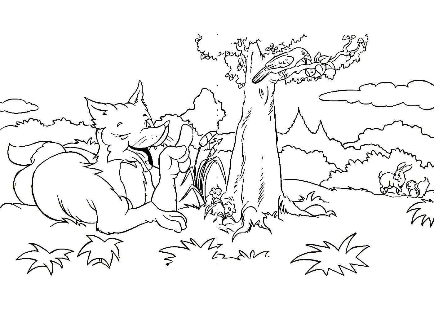 Ворона и лисица раскраска