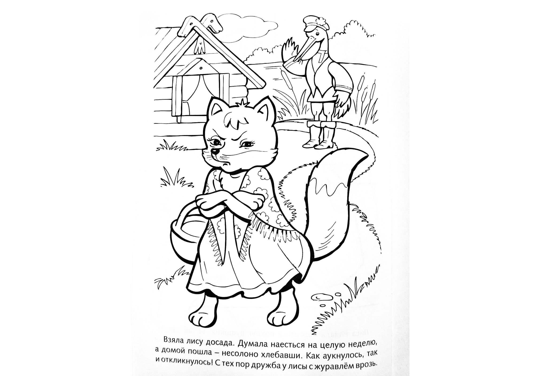 Сказка лиса и журавль раскраска для детей