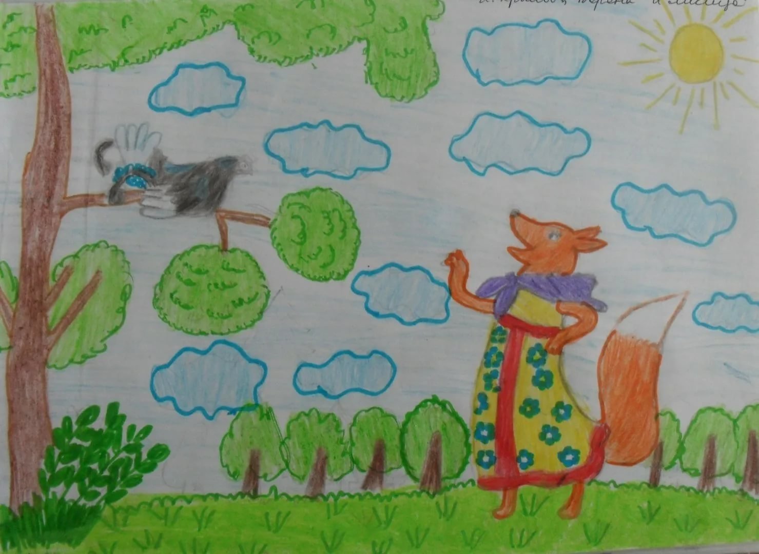 Рисунок к басне ворона и лисица
