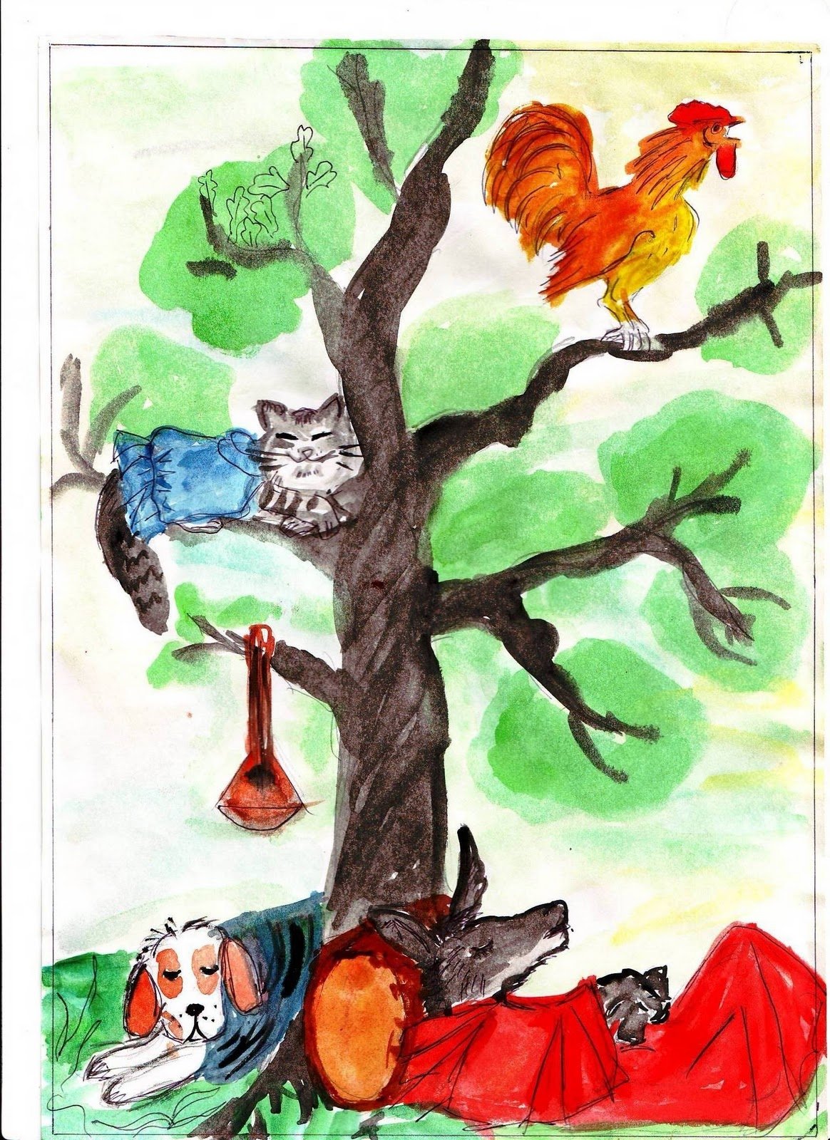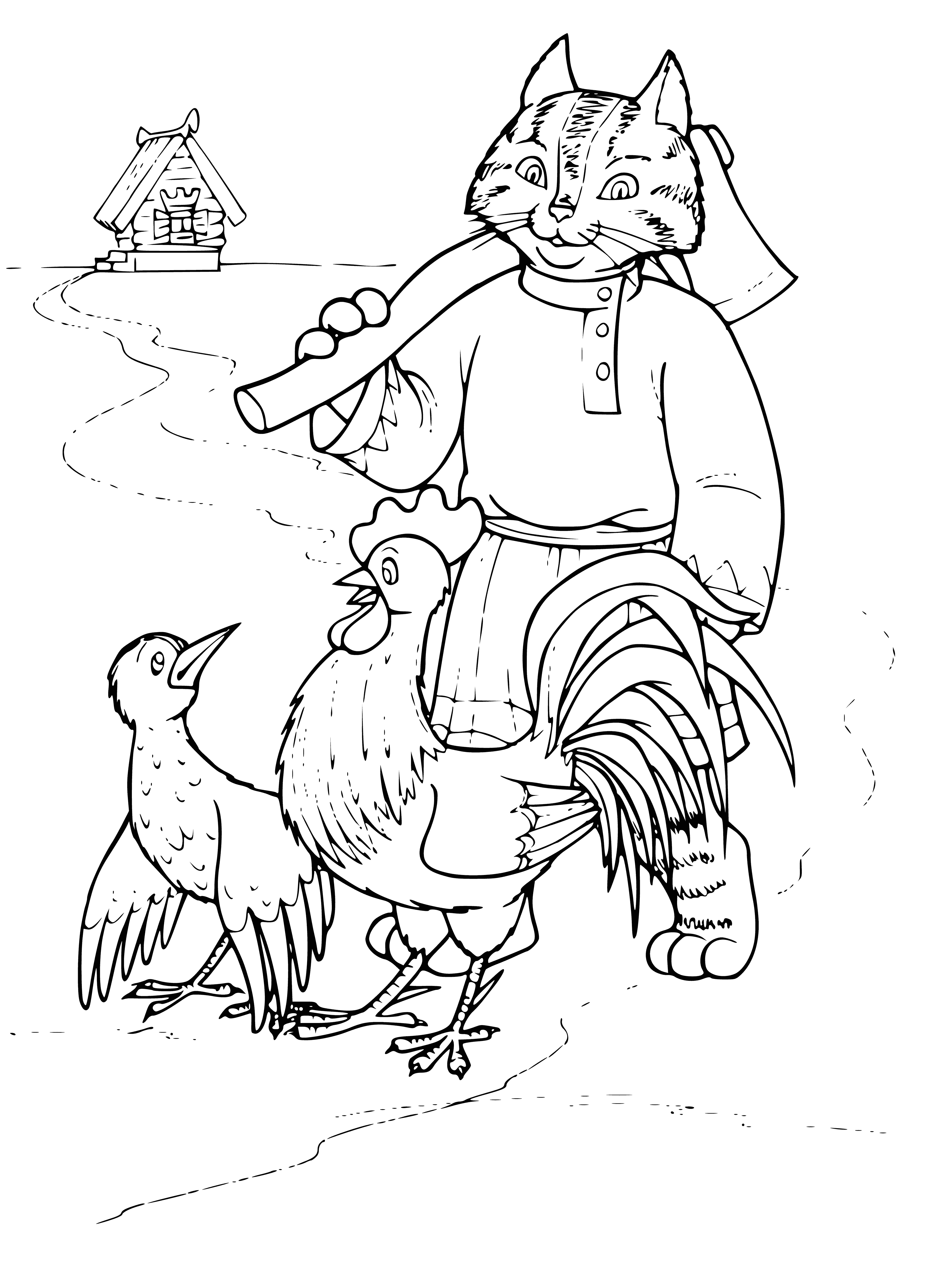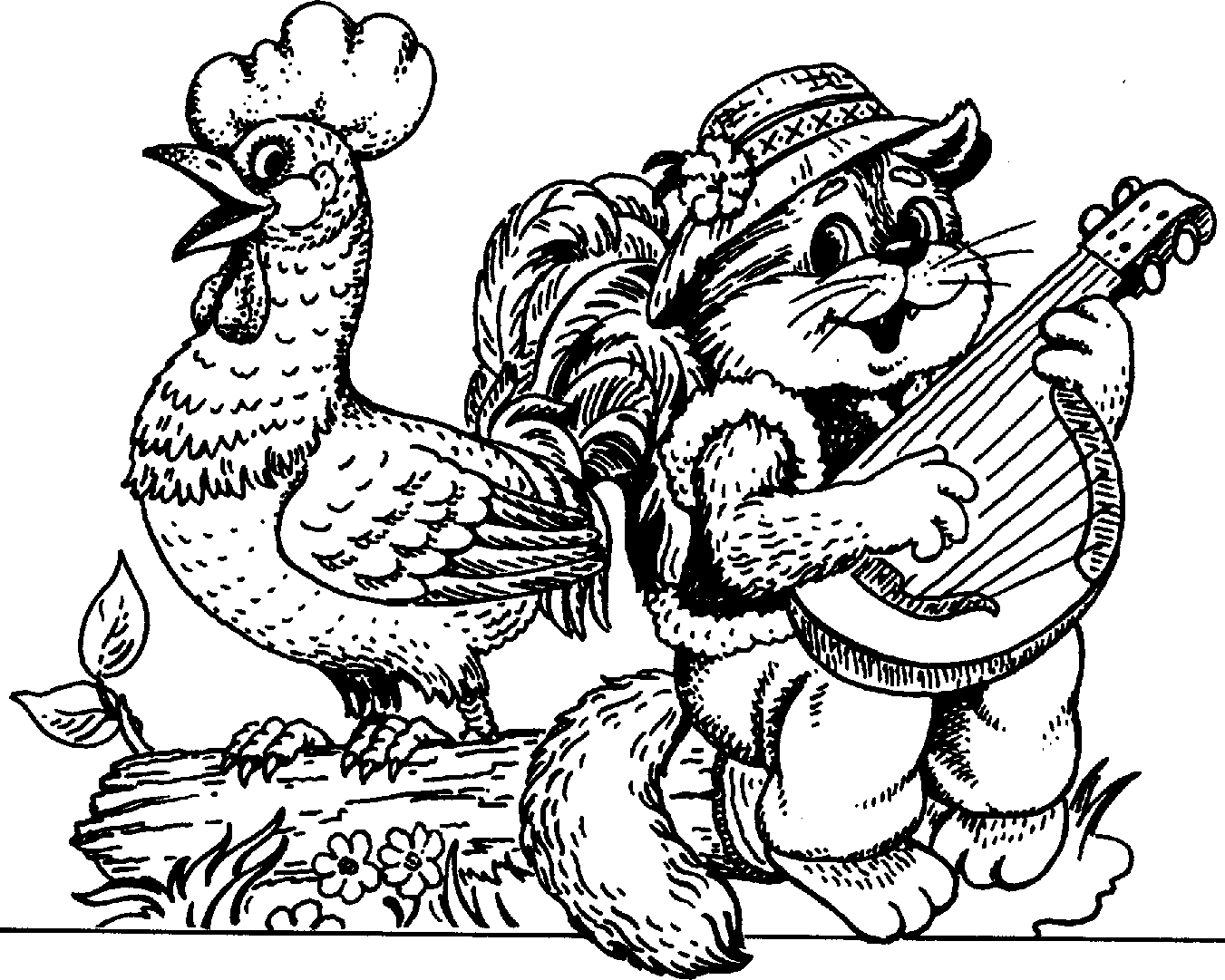 Кот петух и лиса раскраска