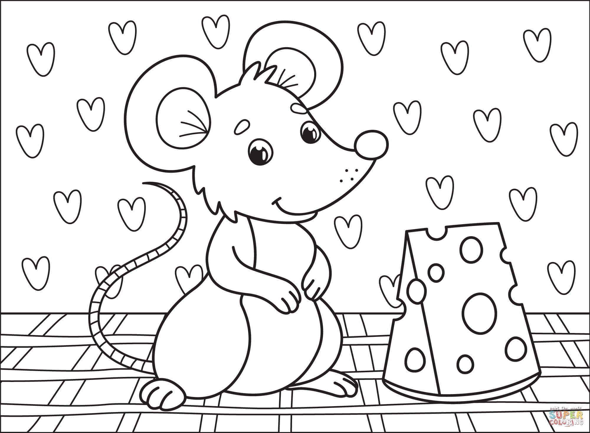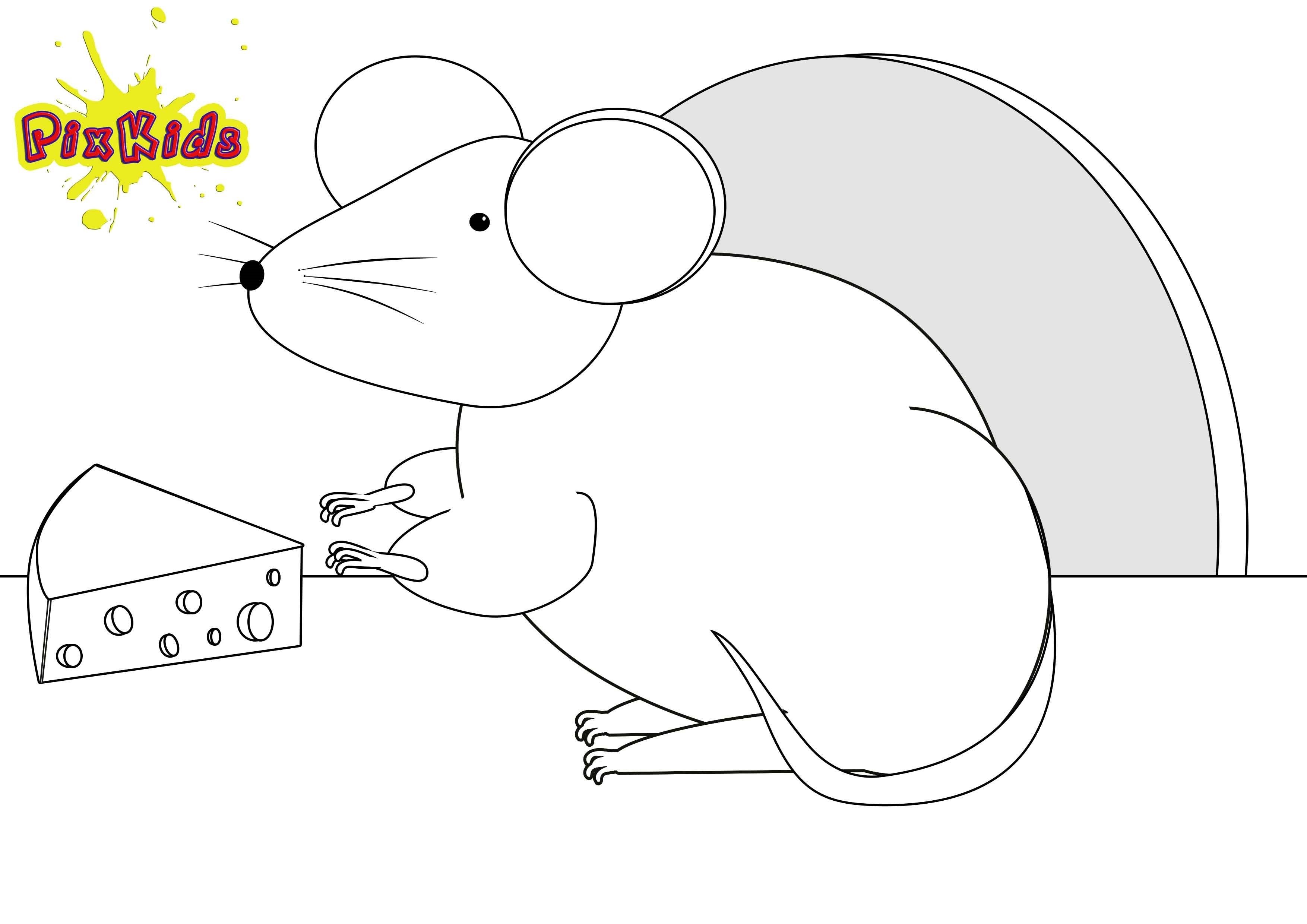 Раскраска мышка с сыром
