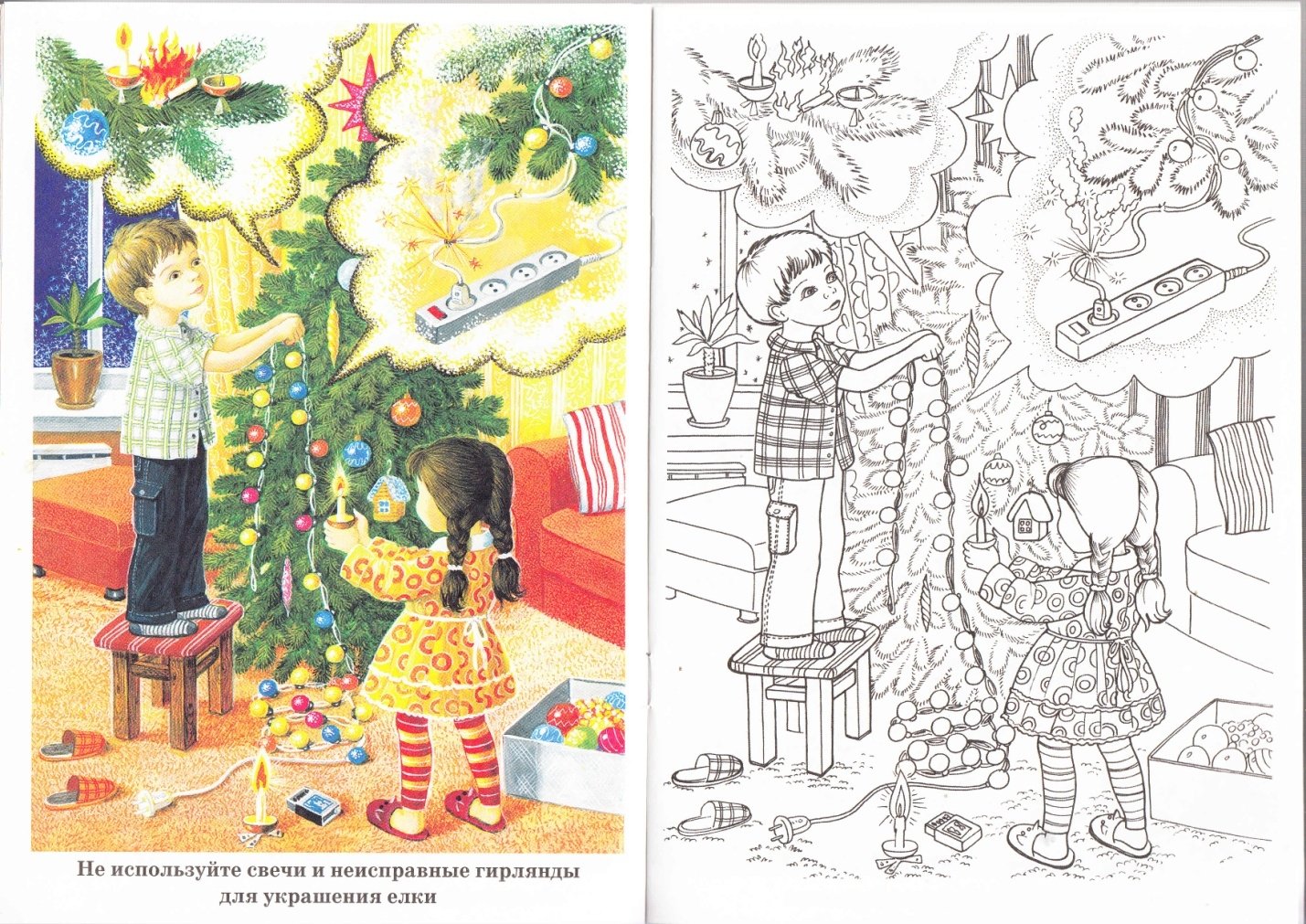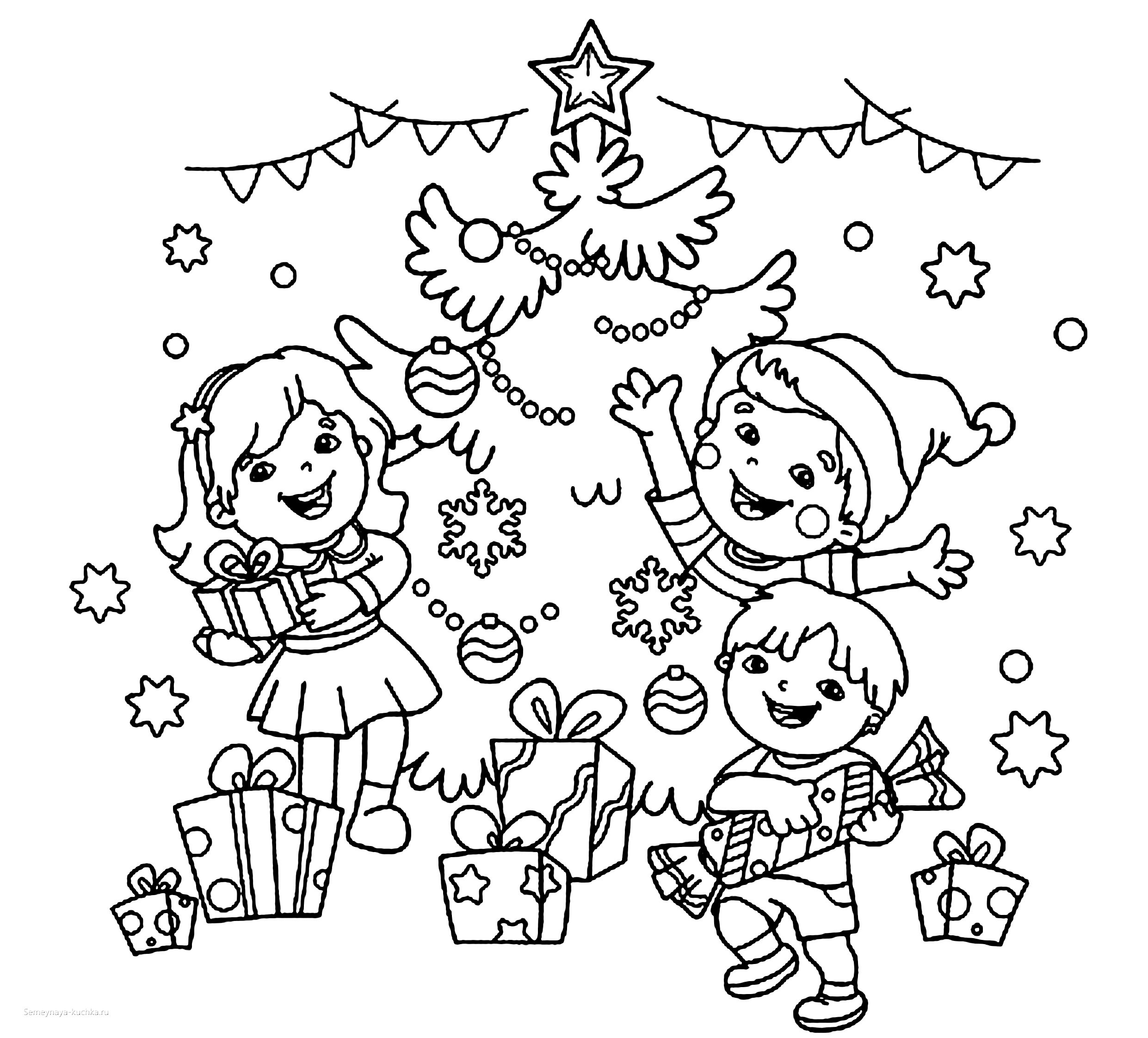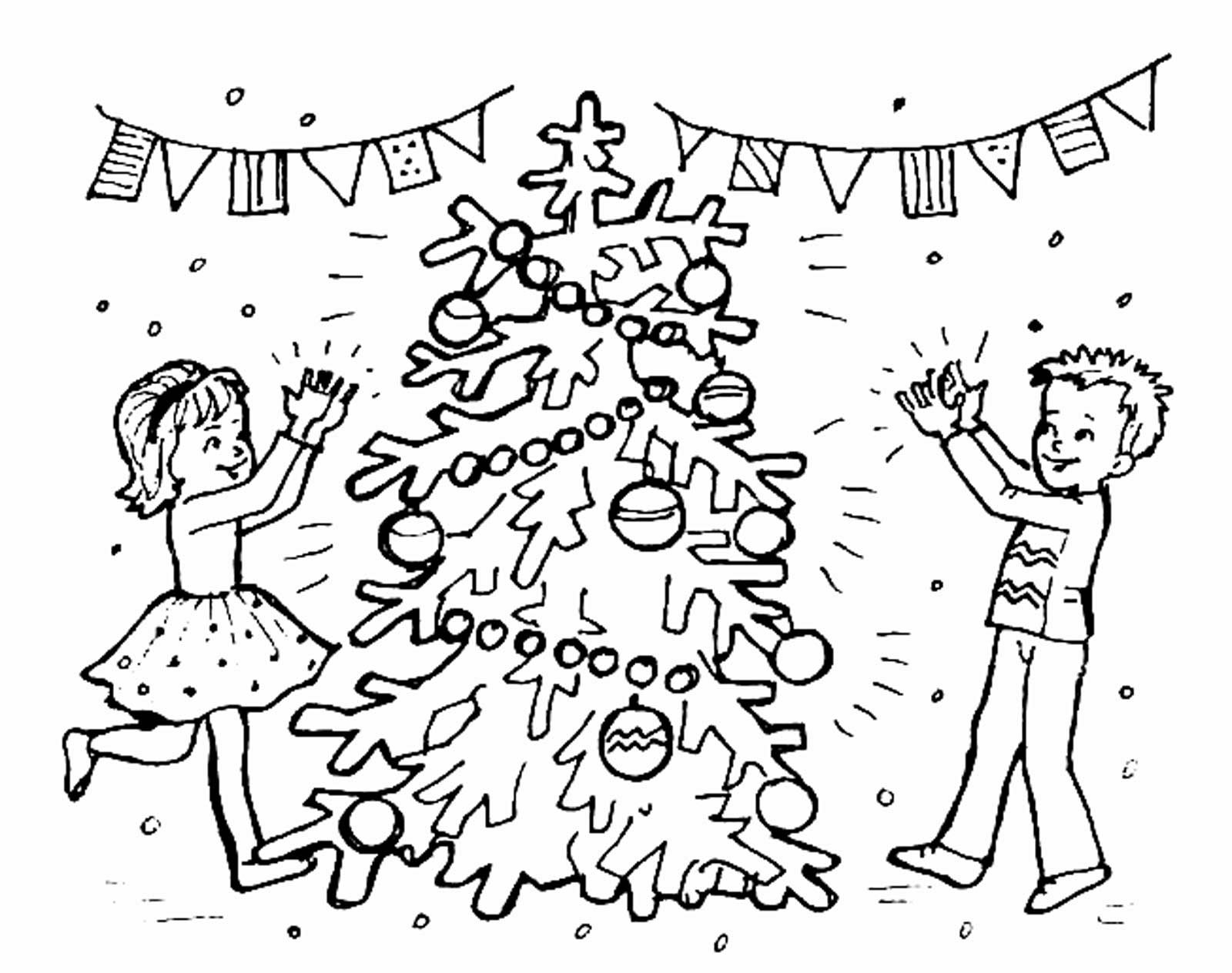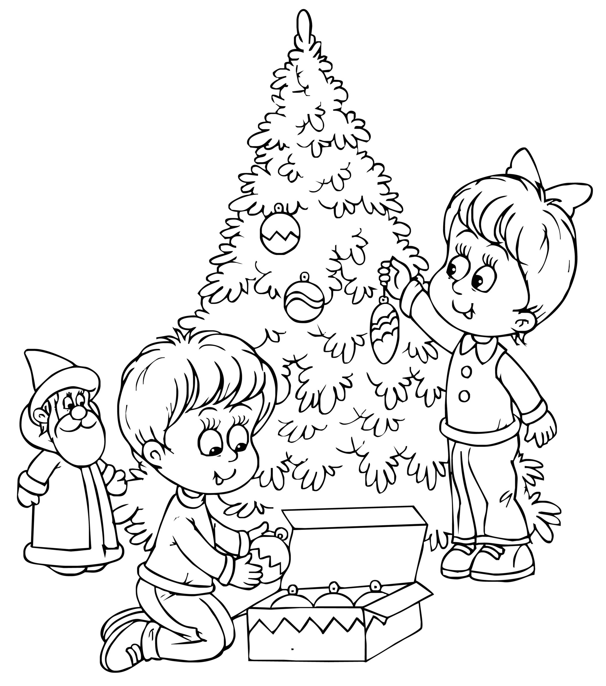 Дети наряжают елку раскраска