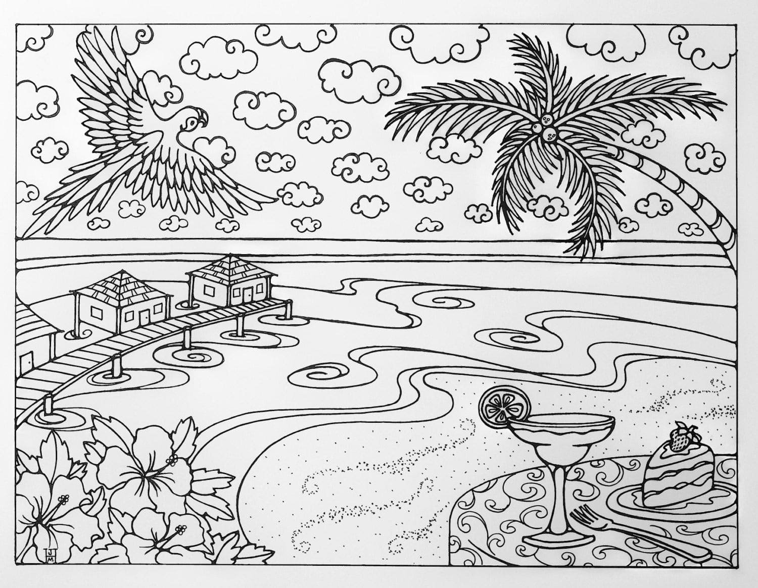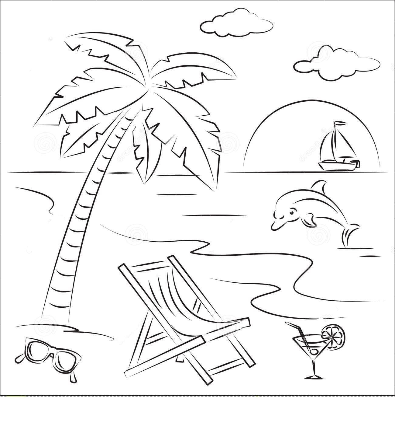 Раскраска пляж и море для детей