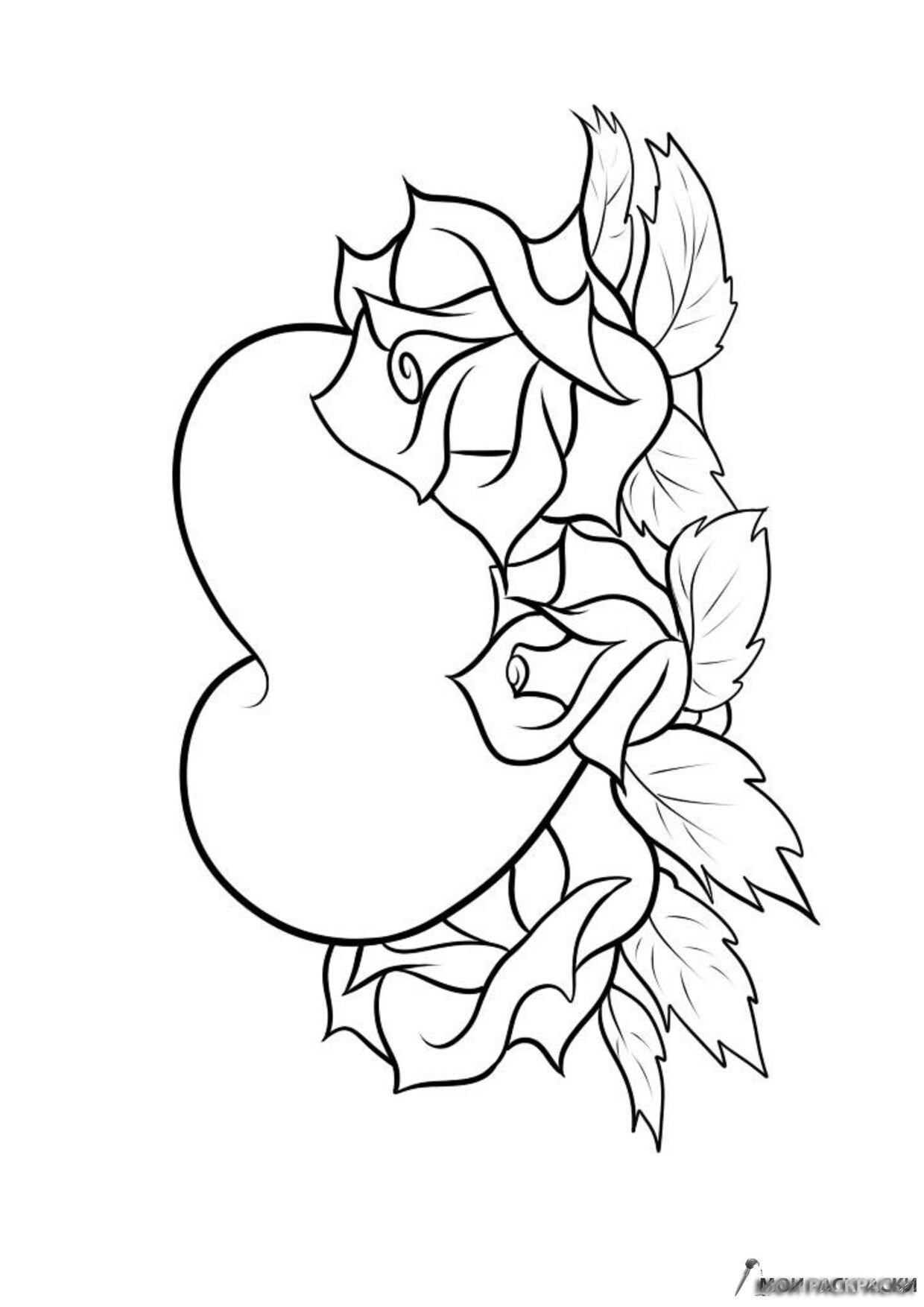 Сердечко с розами раскраска