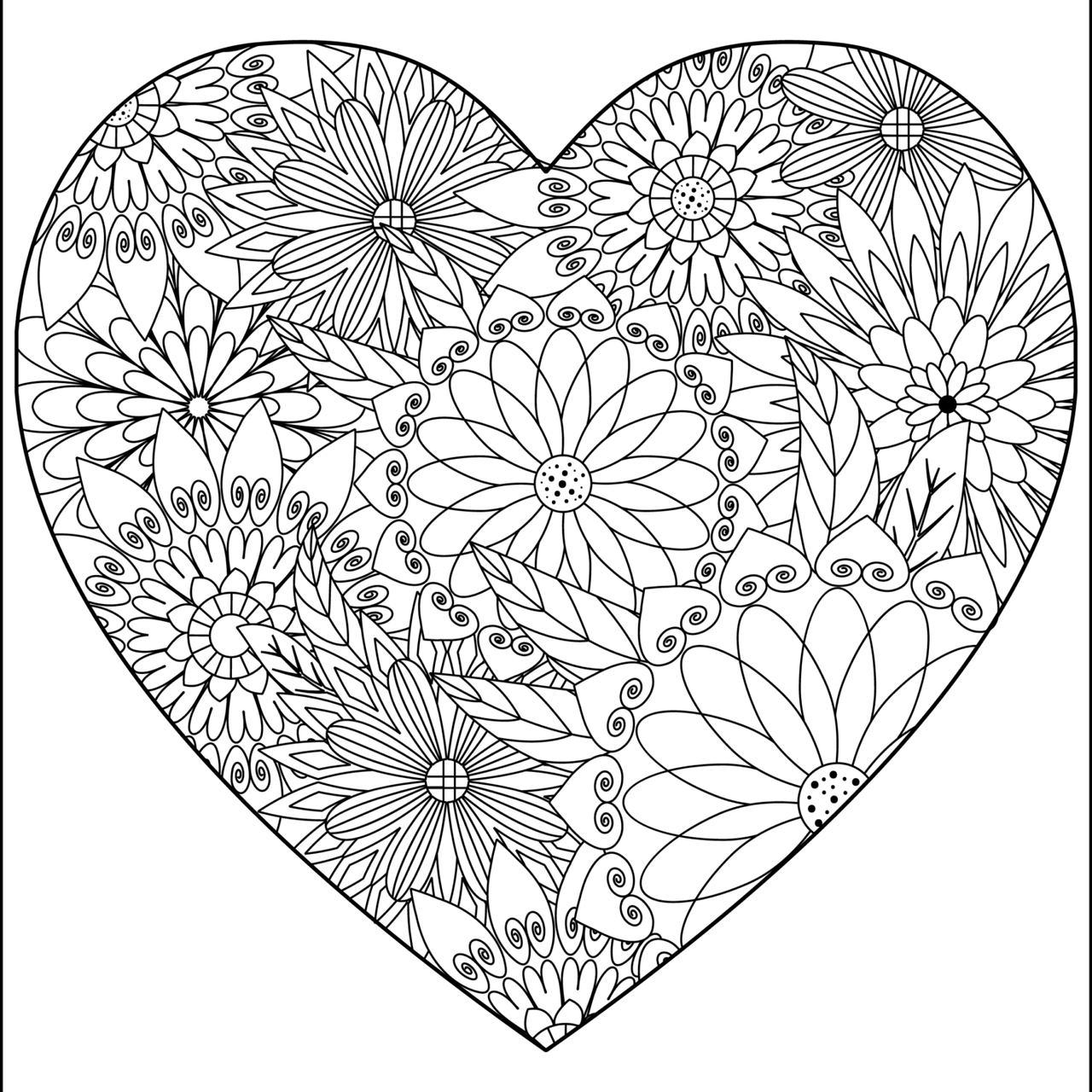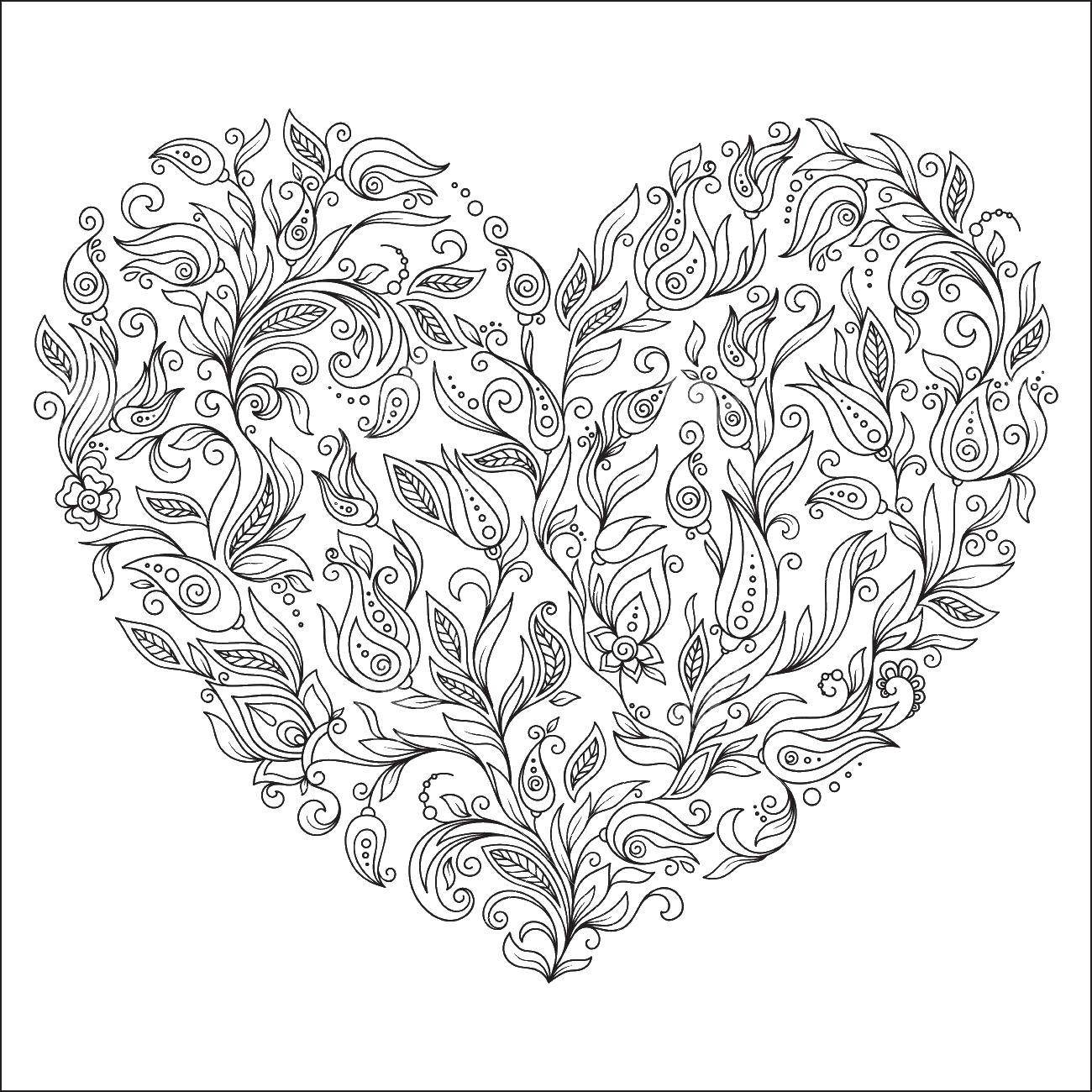 Сердце из цветов раскраска антистресс