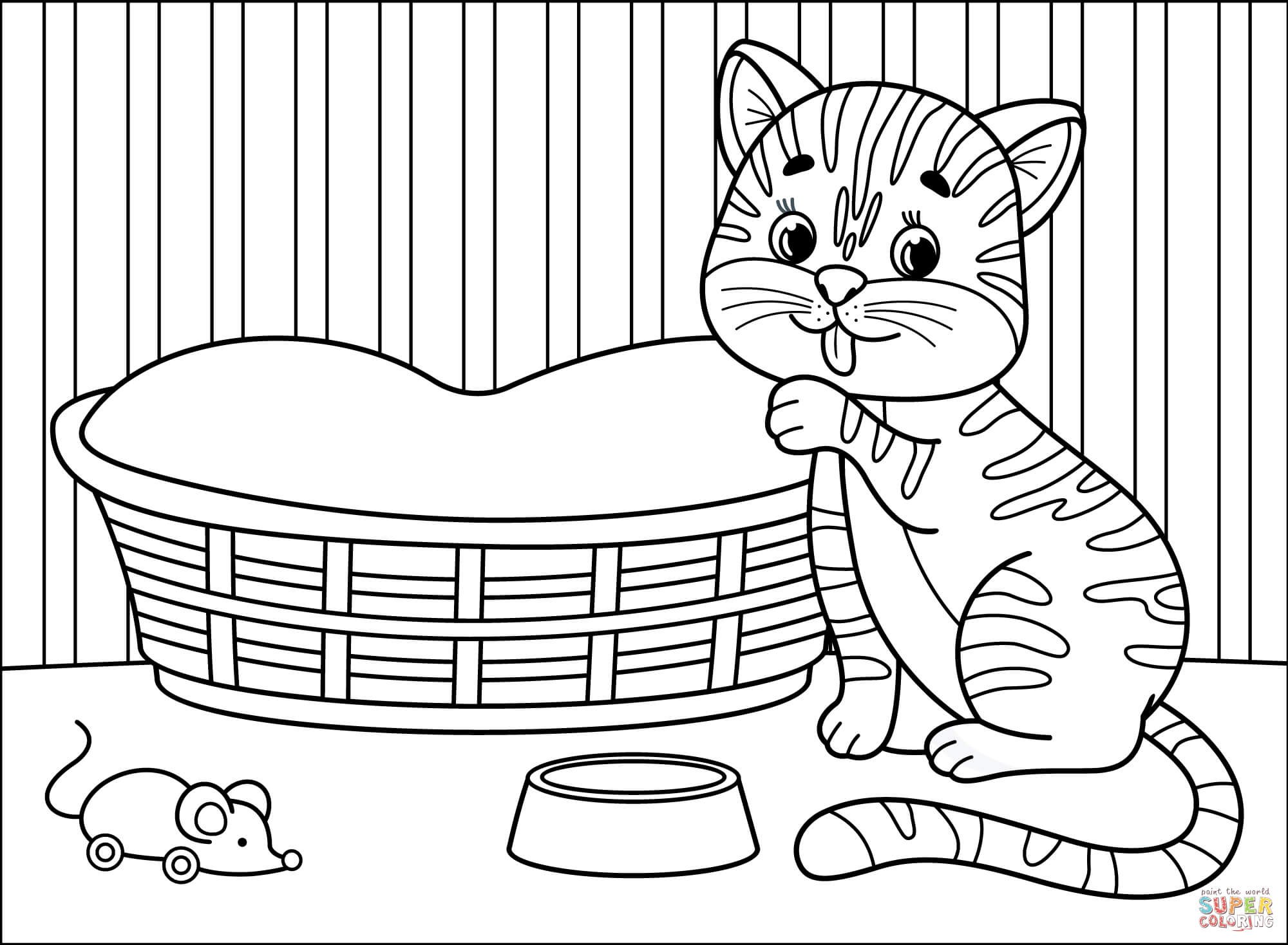 Раскраска для девочек полосатый котенок