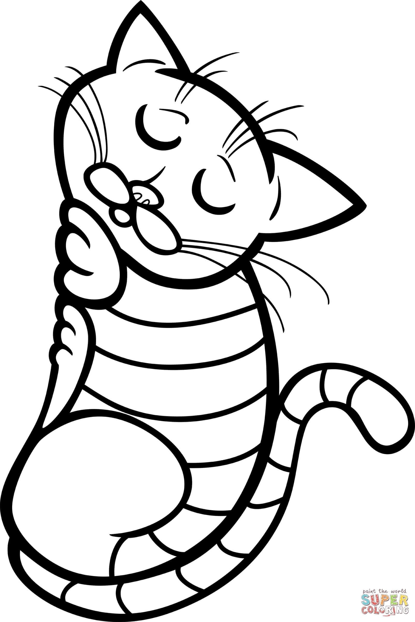 Полосатая кошка раскраска для детей