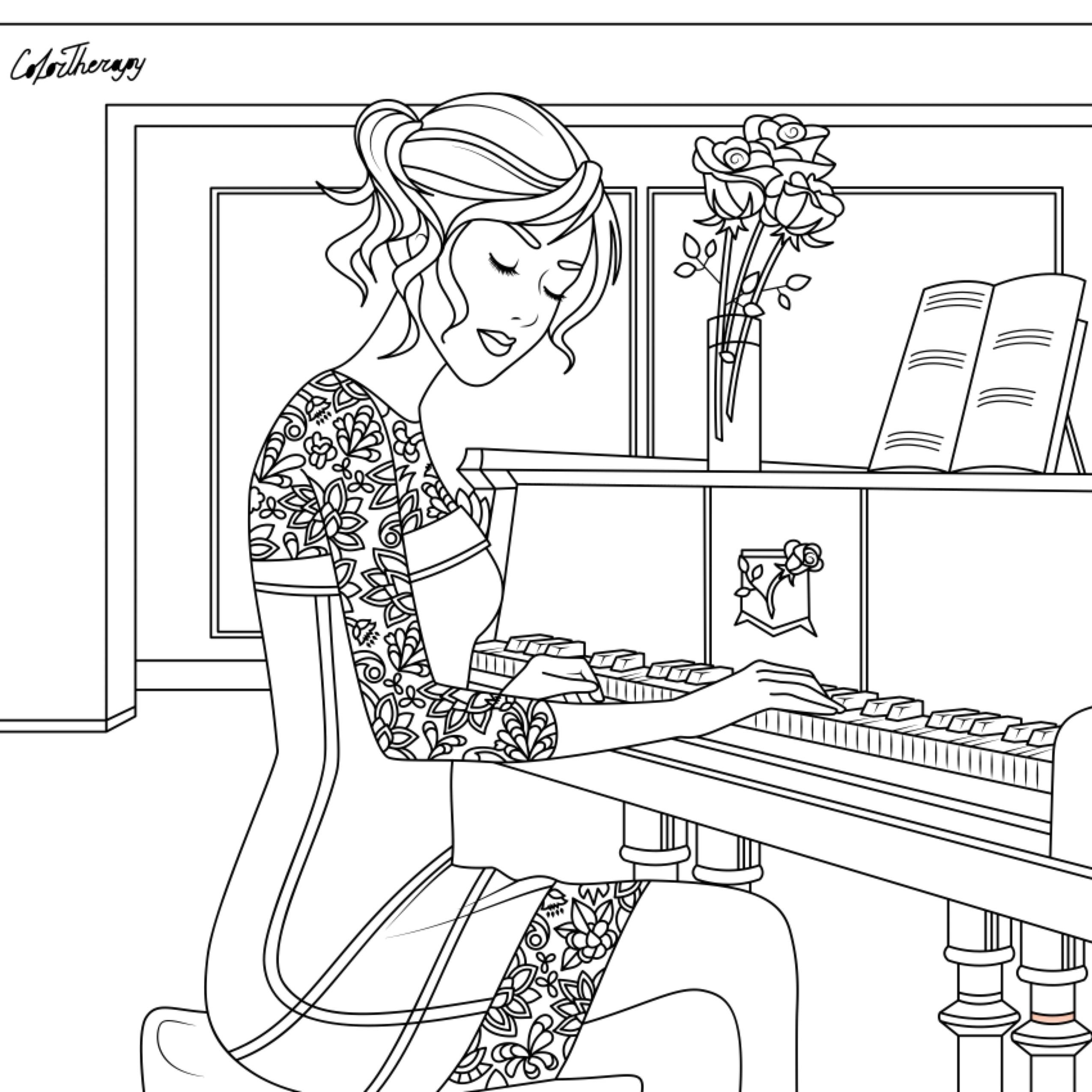 Раскраска пианистка девочка