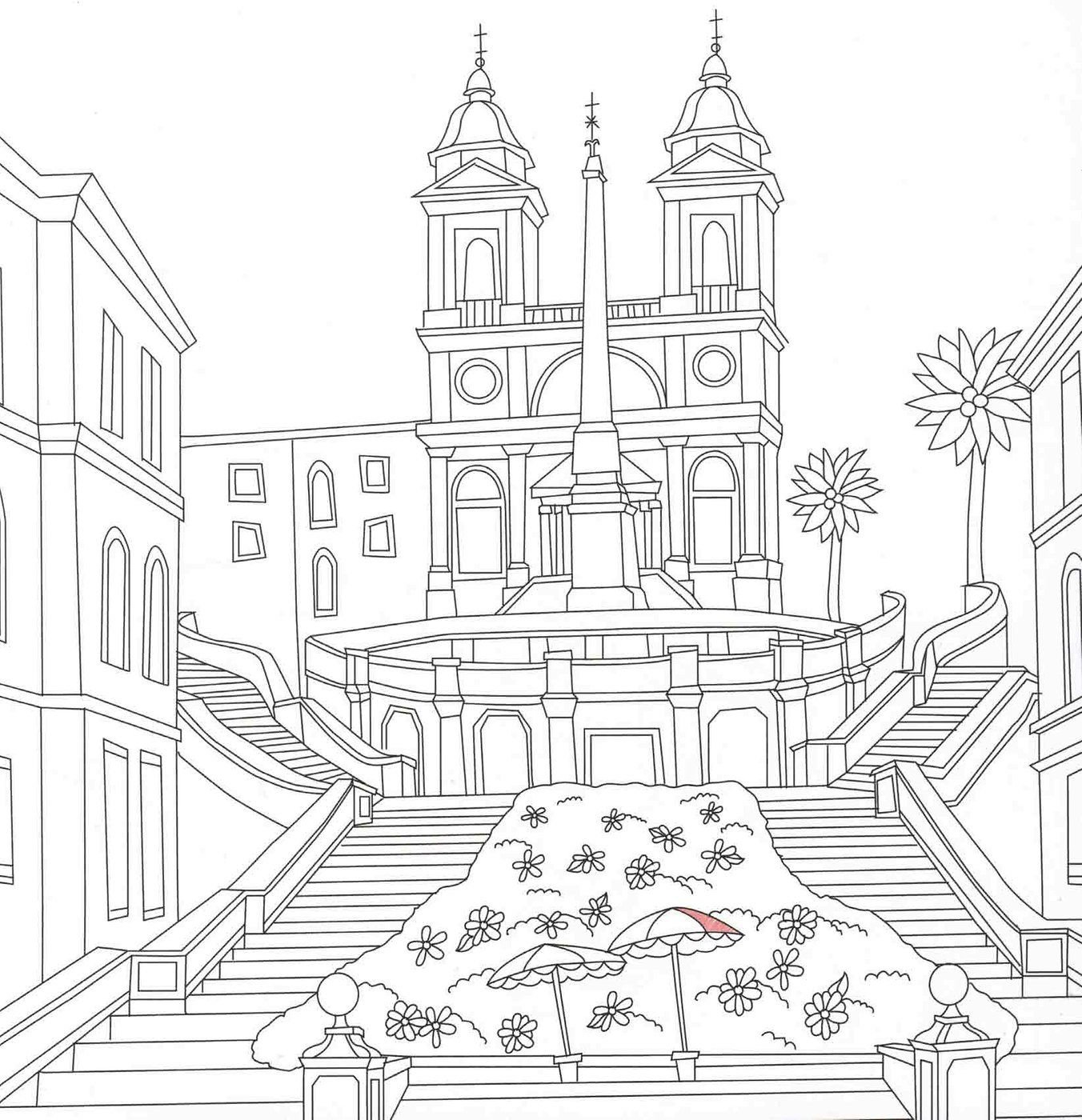 Архитектурный пейзаж раскраска
