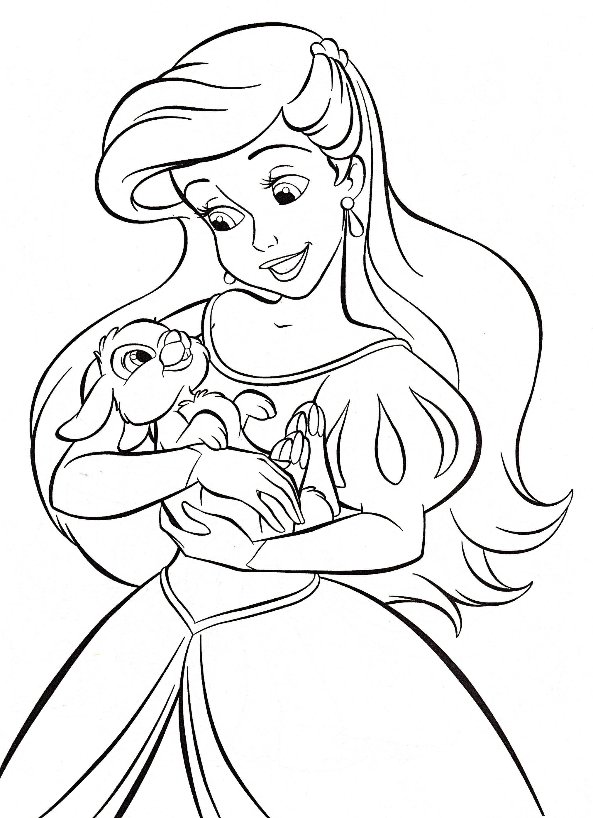 Принцесса и зайчик раскраска